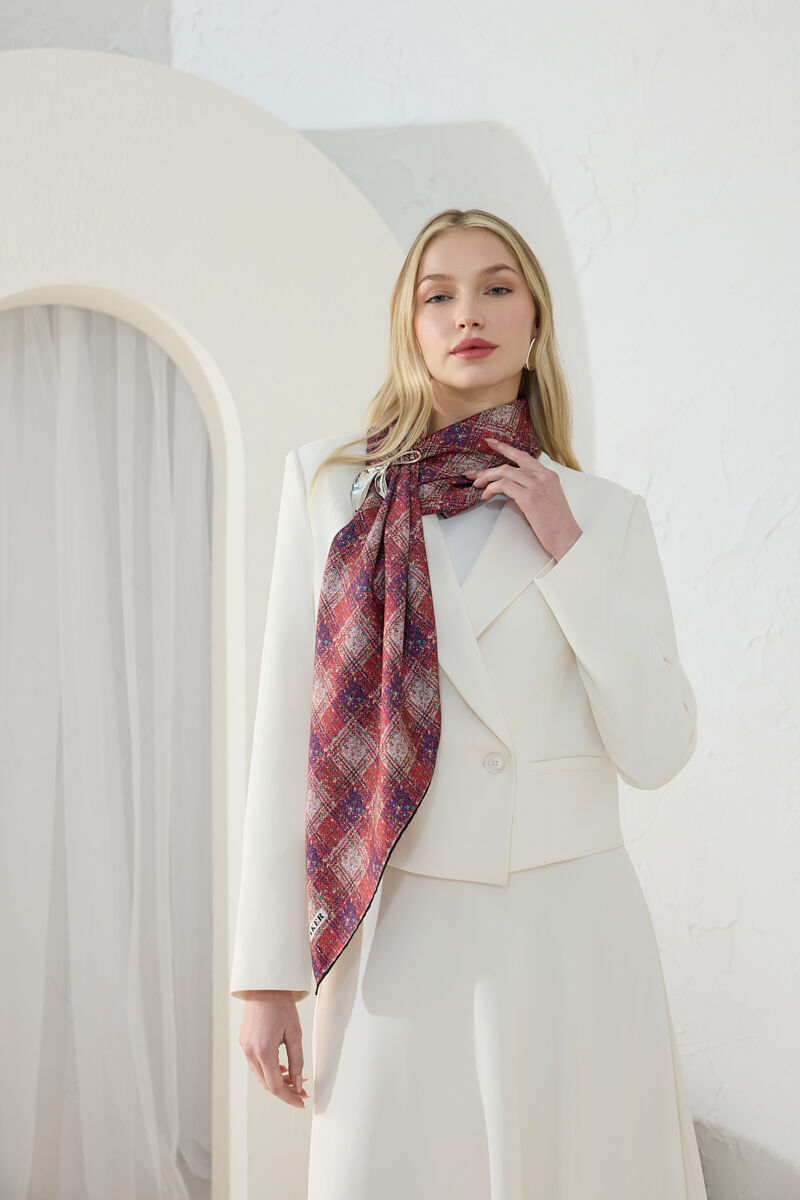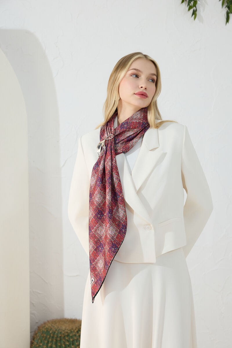 Kırmızı 90X90 İpek Krep Saten Eşarp