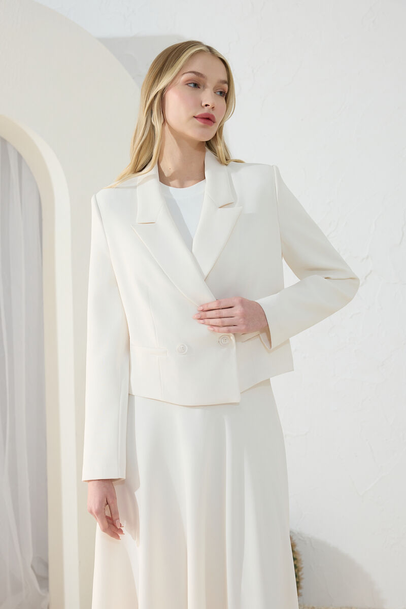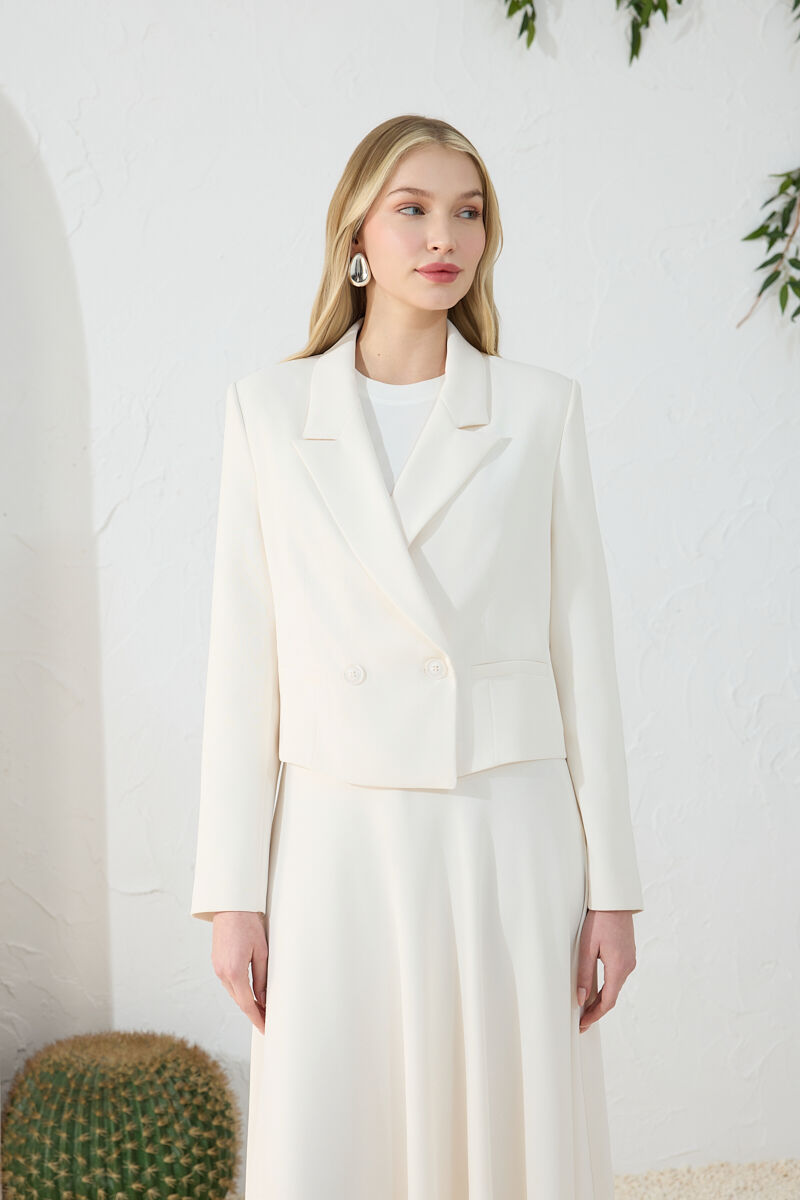 Ekru Sıfır Yaka Metal Düğmeli Şık Ceket