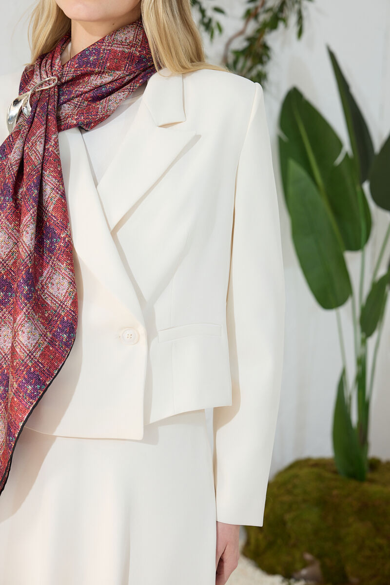 Ekru Yaprak Desenli Keten Kısa Ceket
