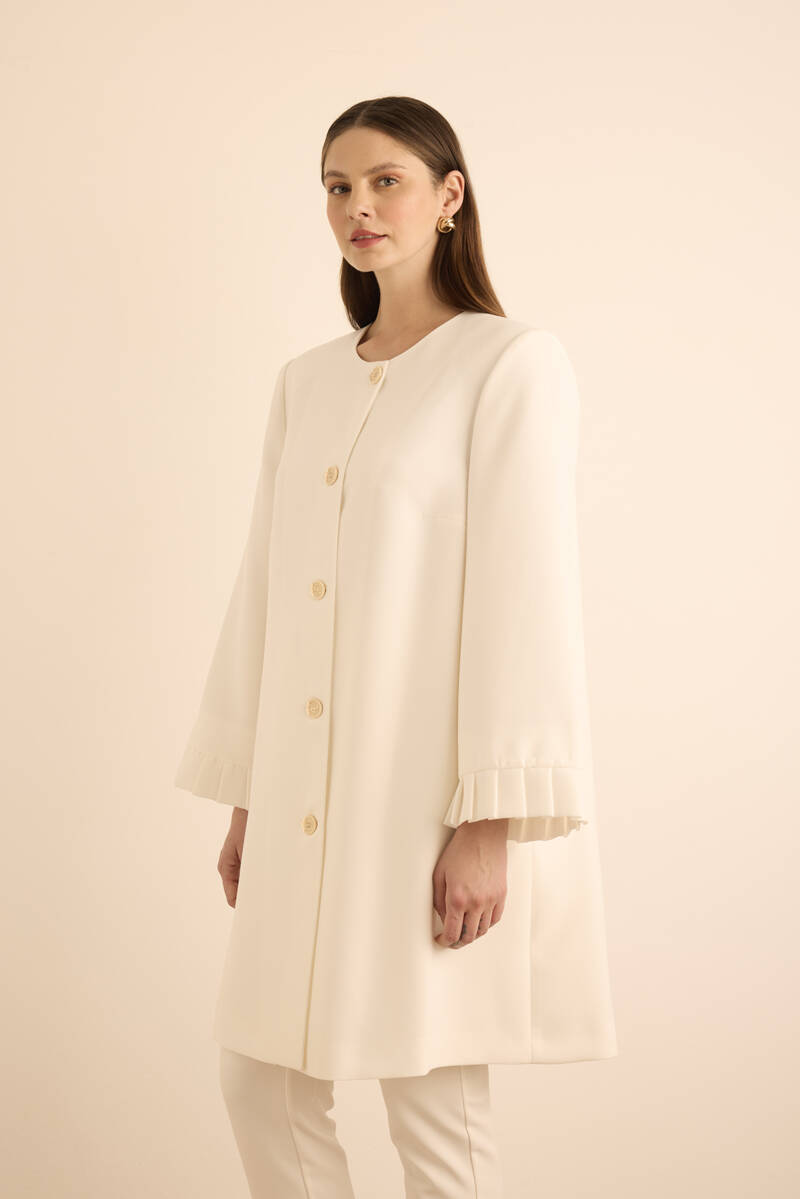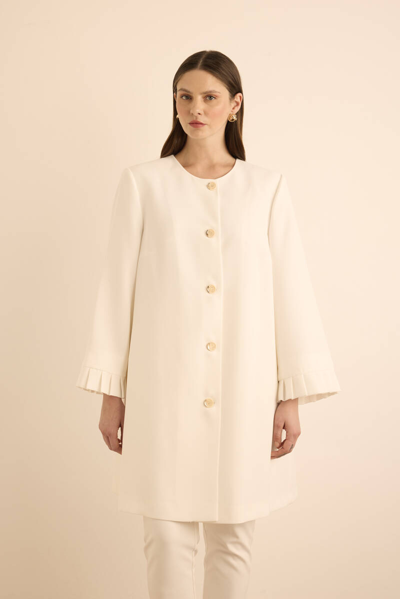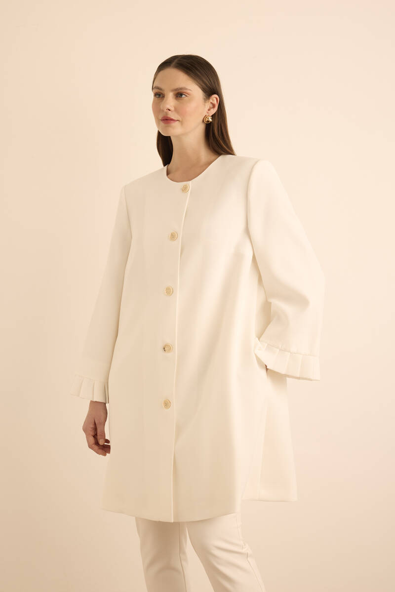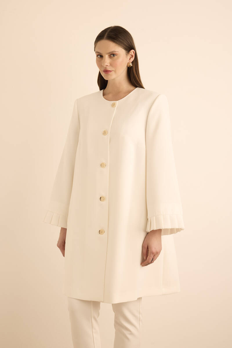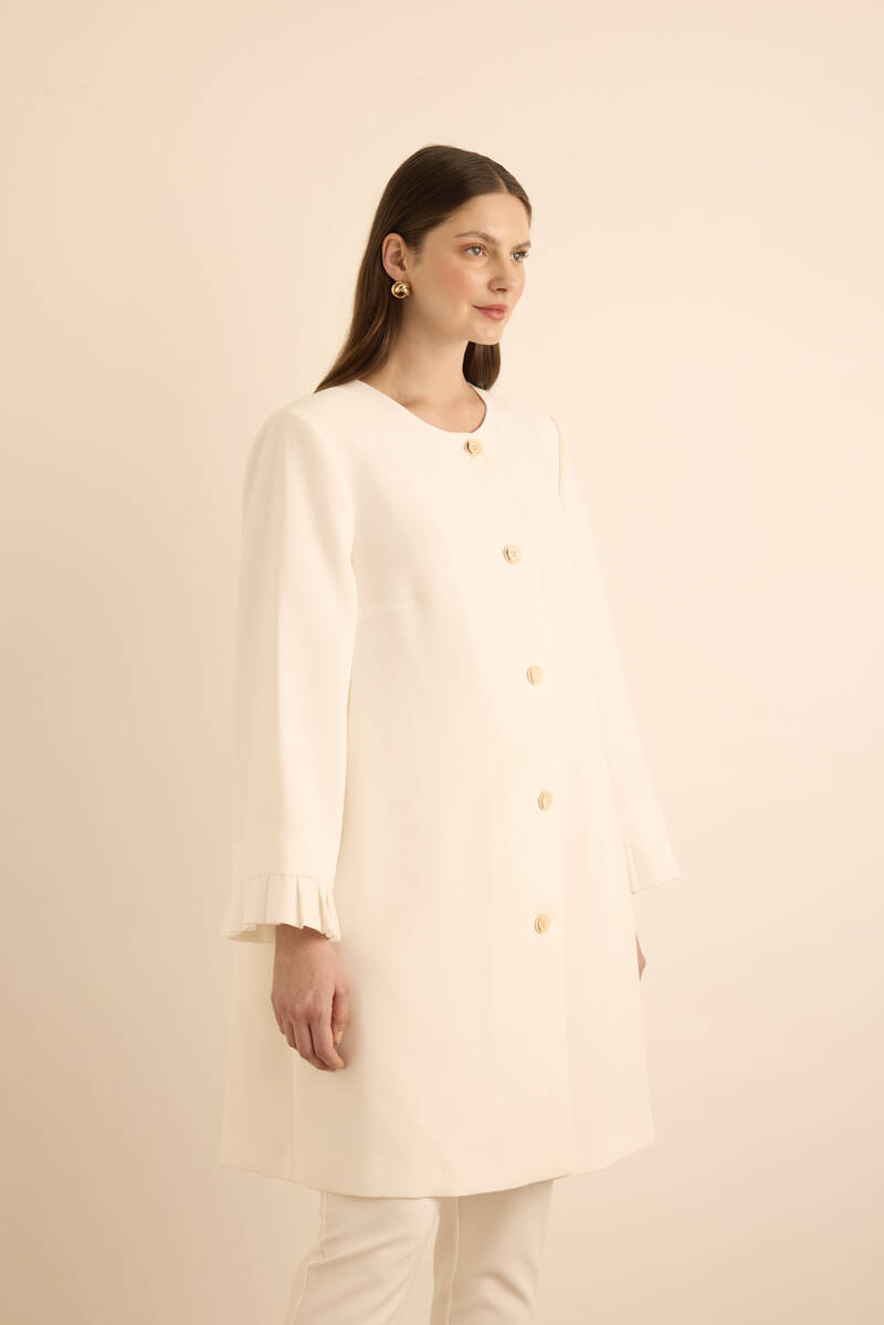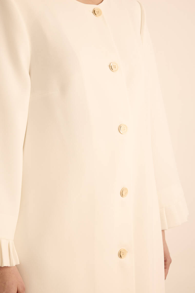 Ekru Yakası Taşlı Düğmeli Kap
