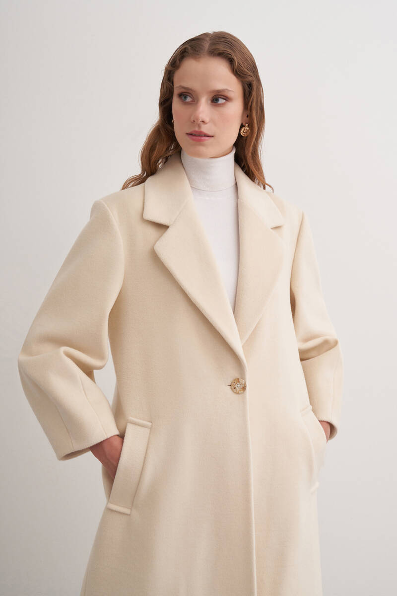 Ekru Kruvaze Kapamalı Pens Detaylı Manto