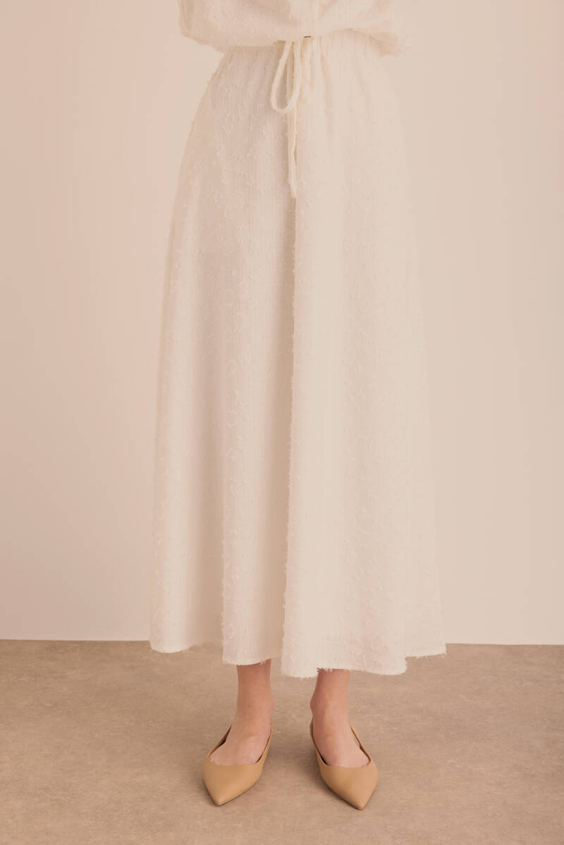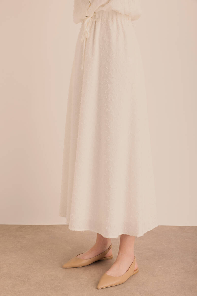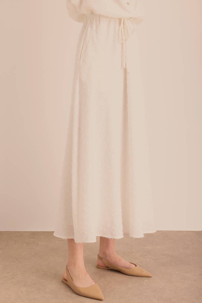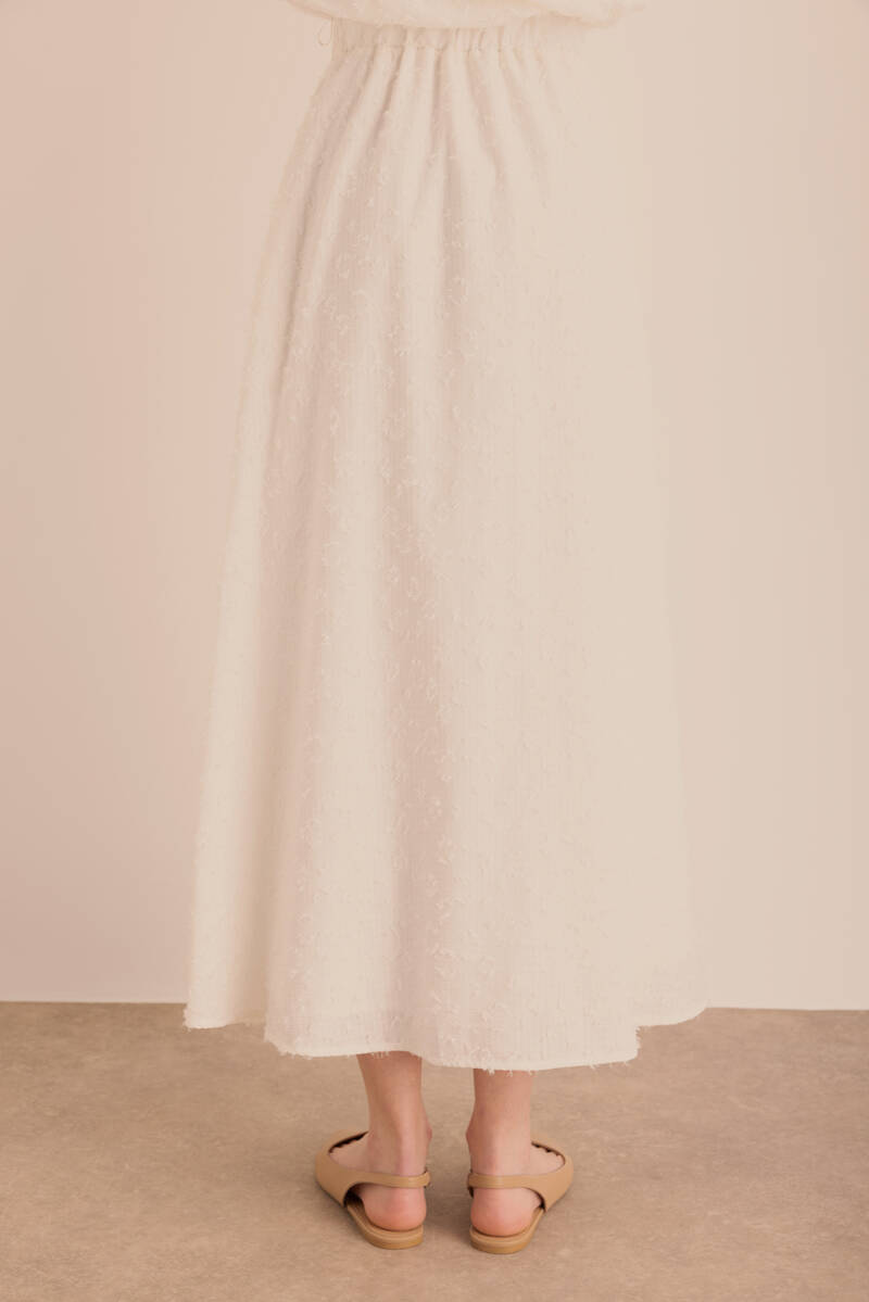 Ekru Kumaşı Püskül Detaylı Astarlı Etek