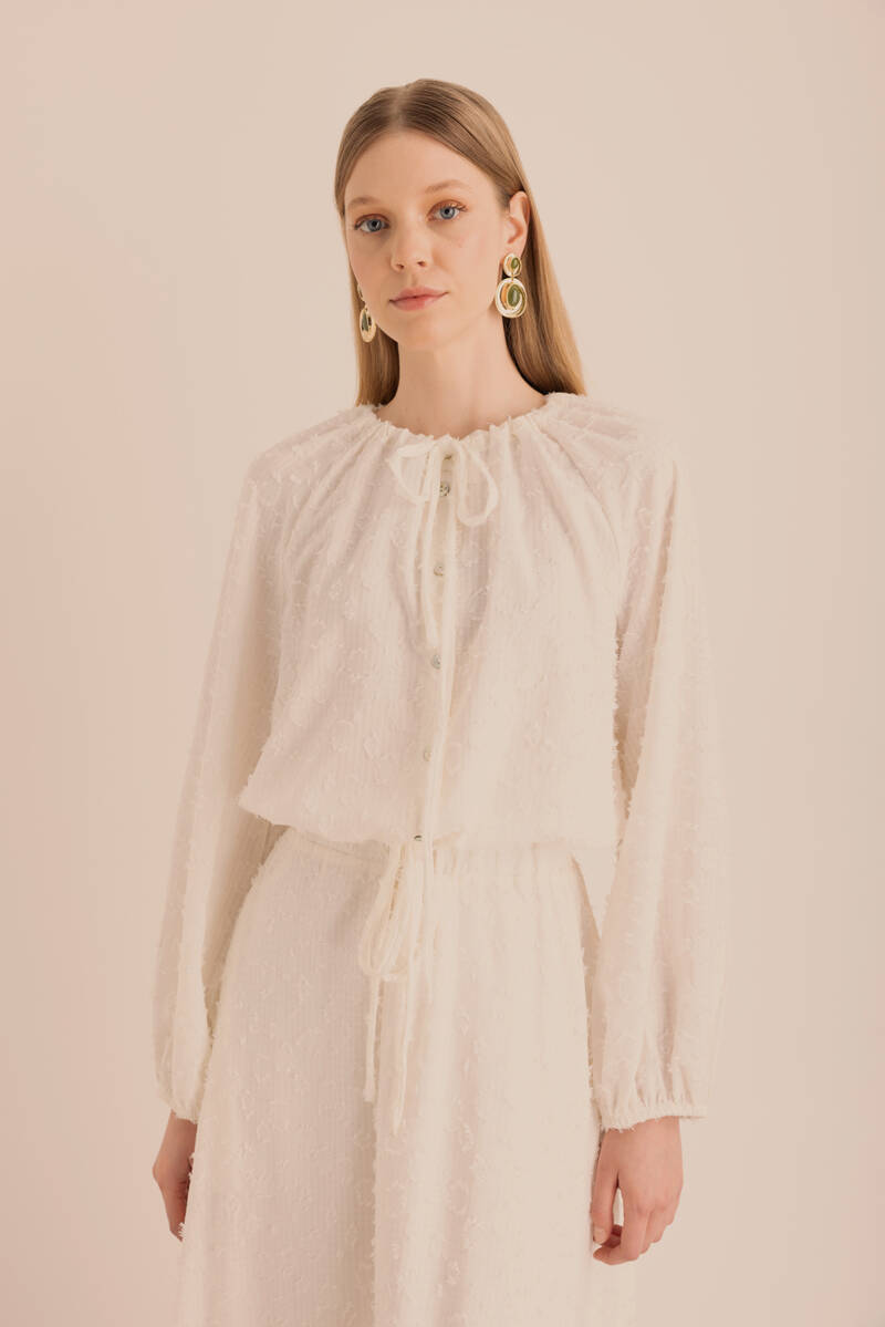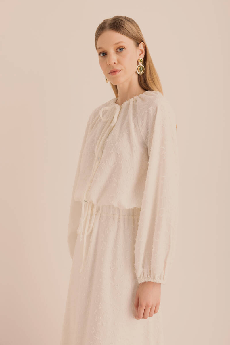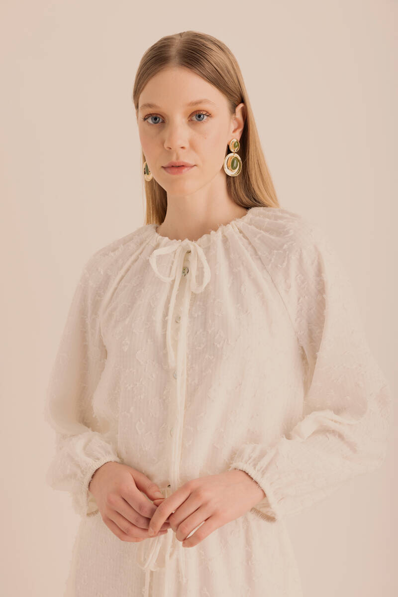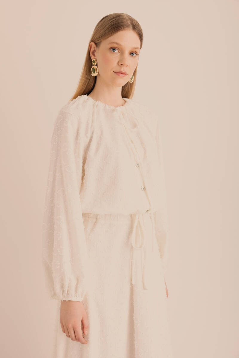 Ekru Kol Ucu Dikiş Detaylı Viscon Tunik