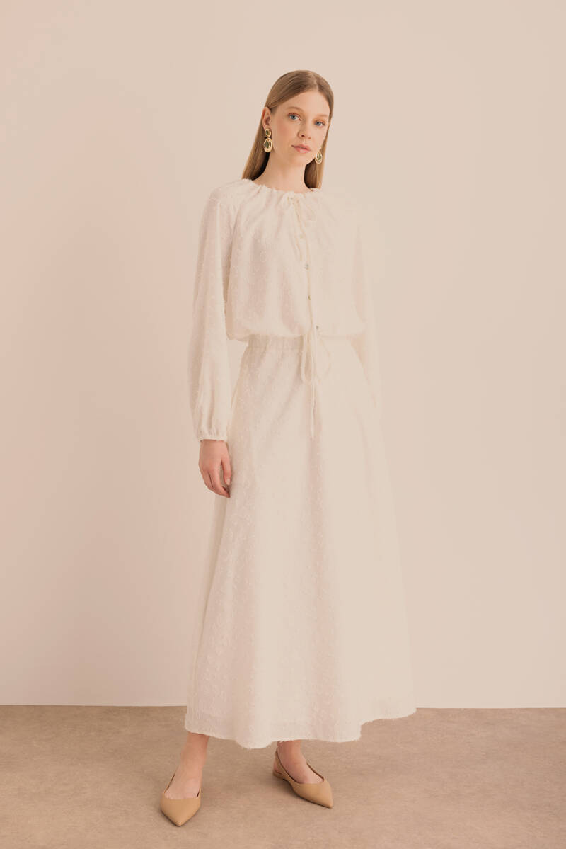 Ekru Kumaşı Püskül Detaylı Astarlı Etek