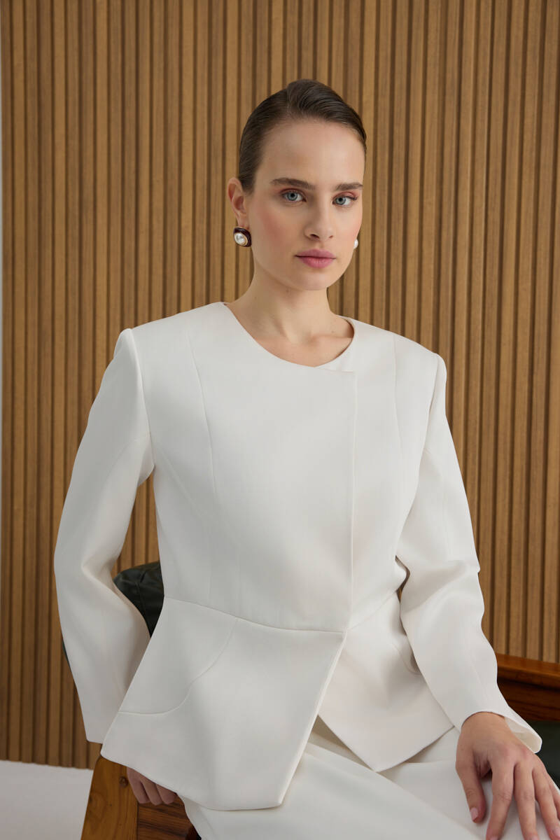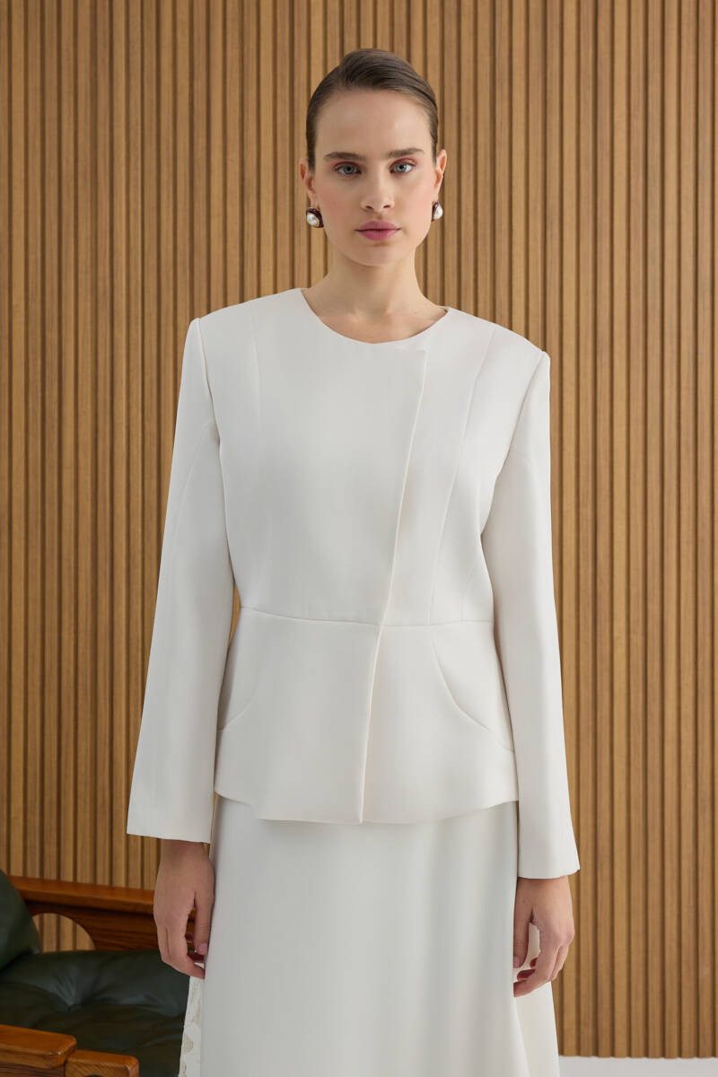 Ekru Sıfır Yaka Metal Düğmeli Şık Ceket
