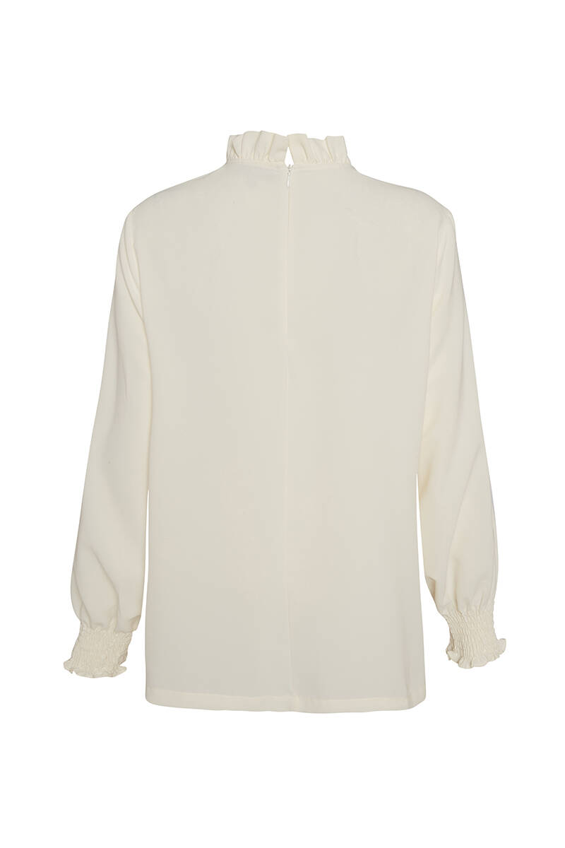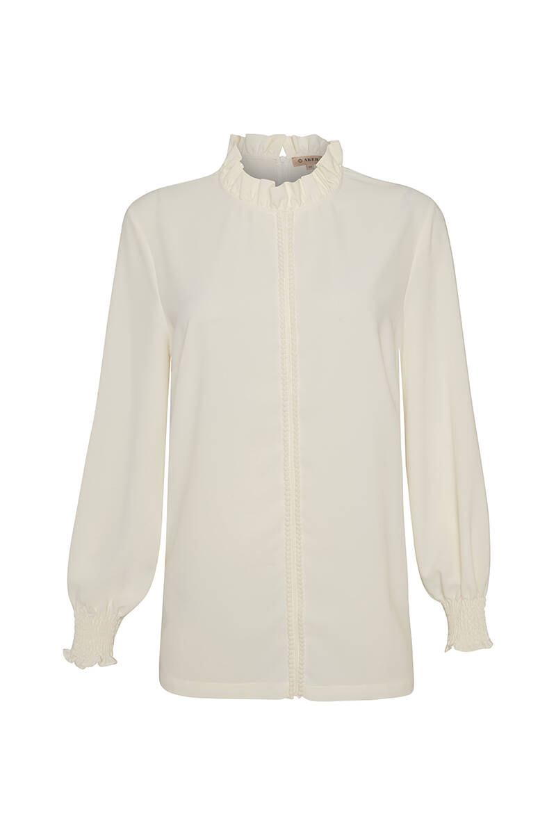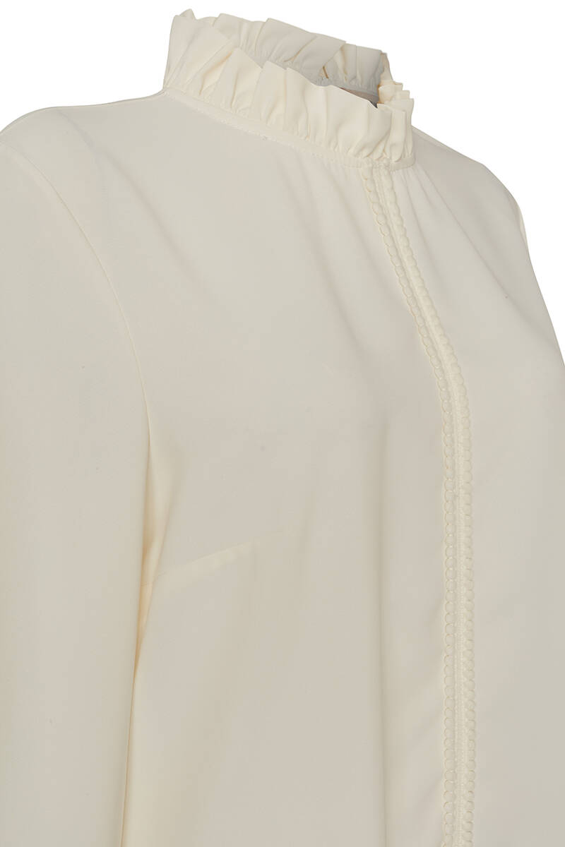 Ekru Pelerinli Düğmeli Bluz