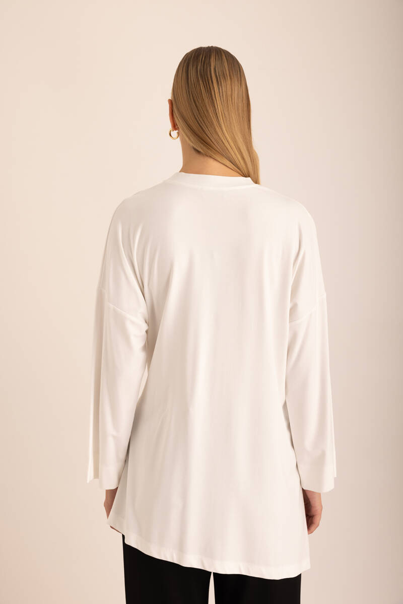 Beyaz Rahat Form Keten Bluz