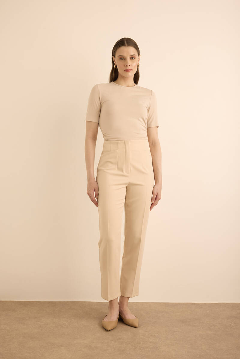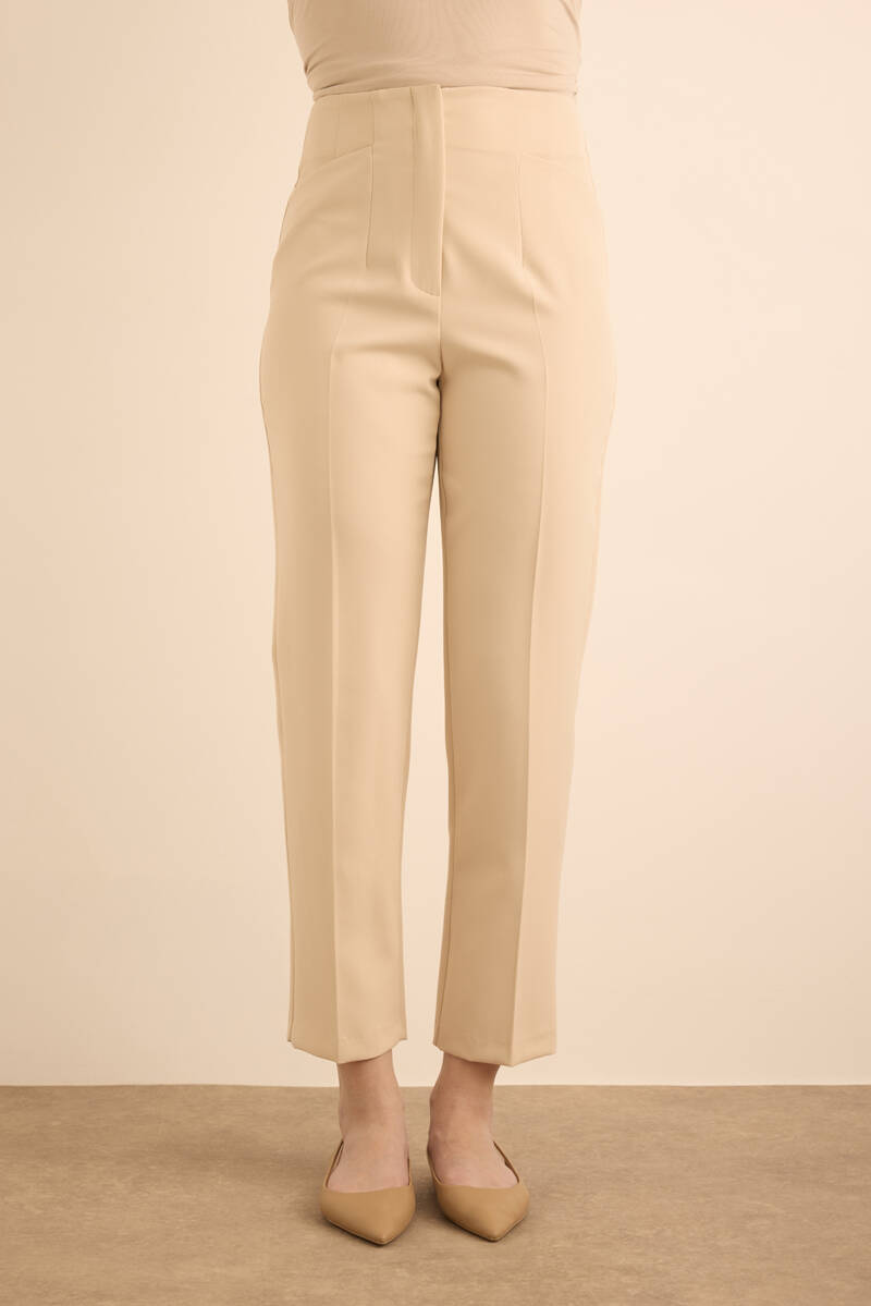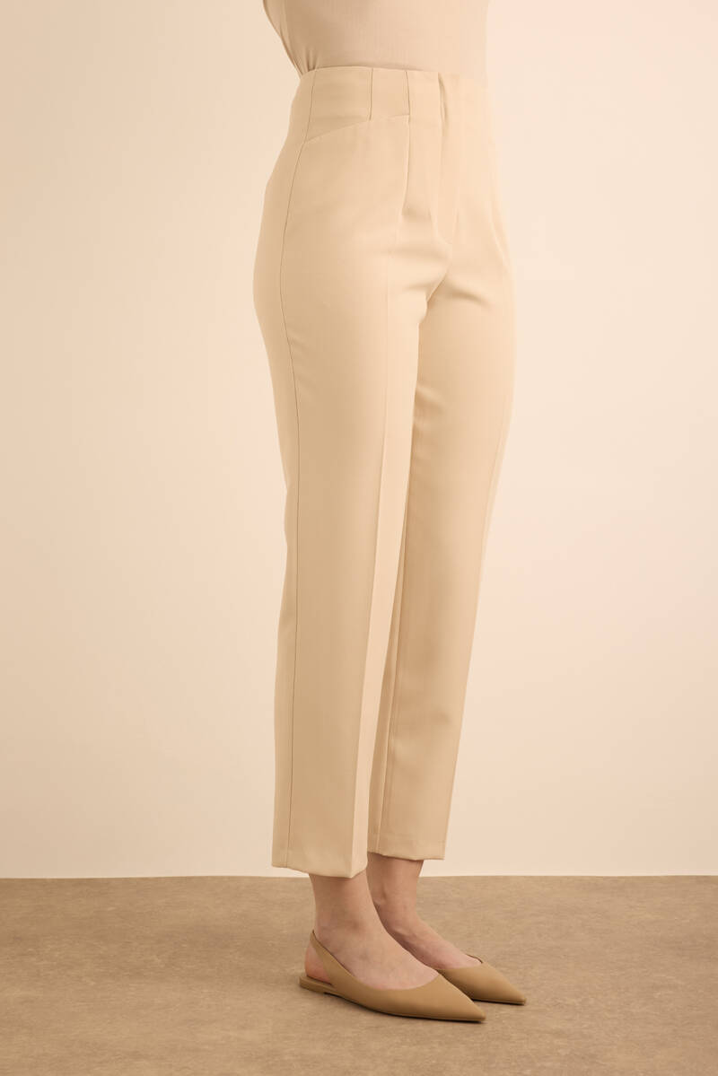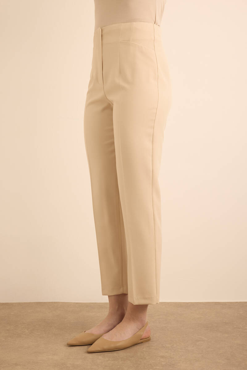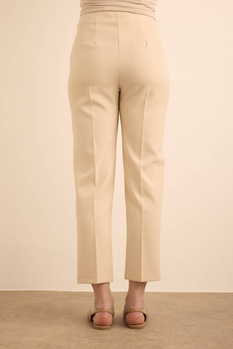 Ekru Önü Cep Detaylı Dokuma Pantolon