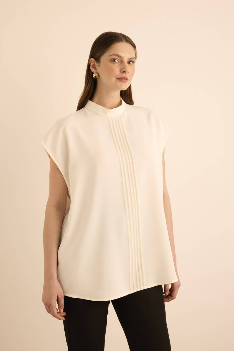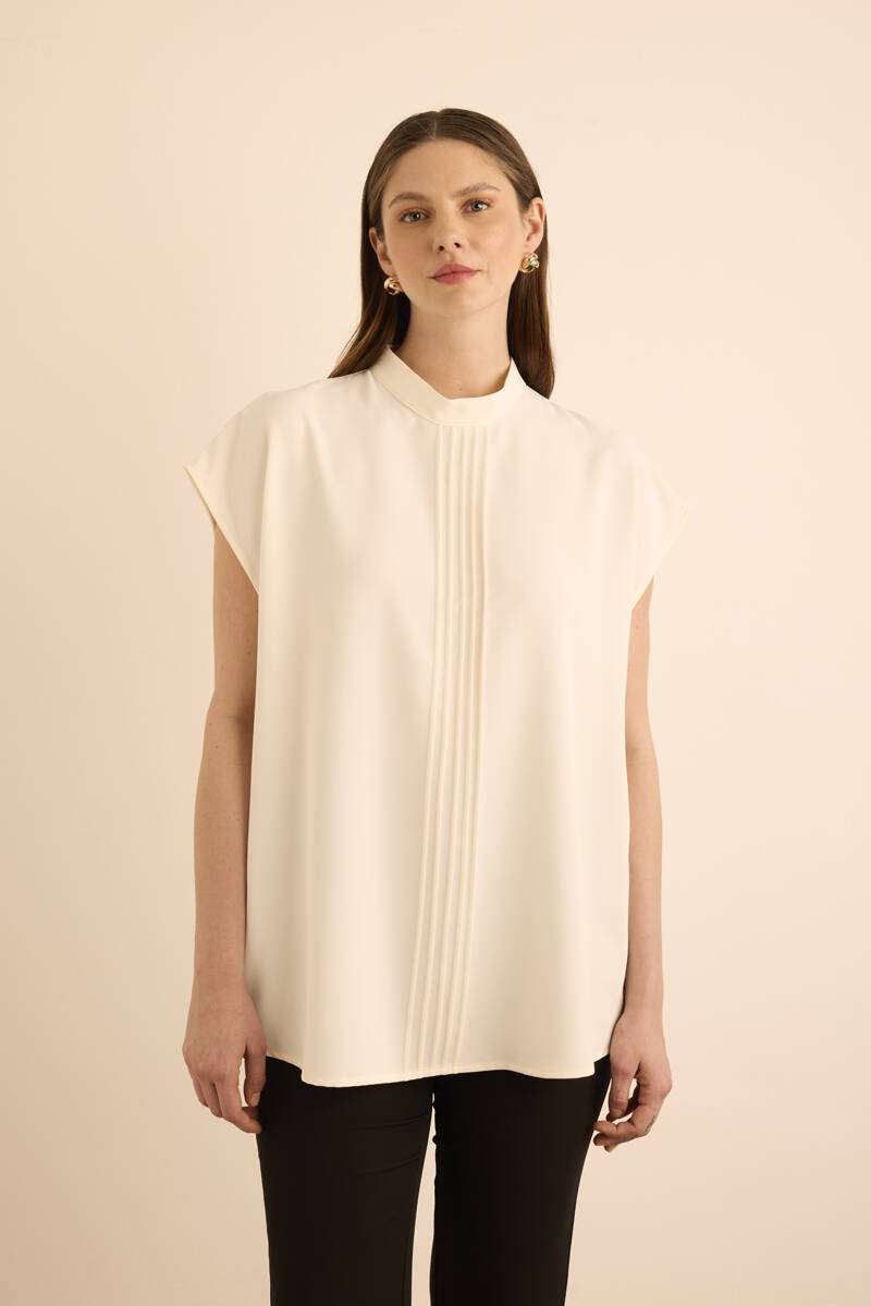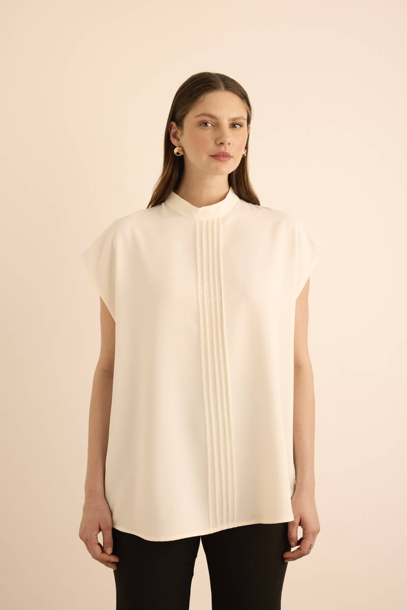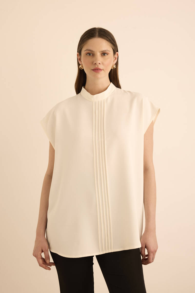 Vizon Bisiklet Yaka Kolsuz Keten Bluz
