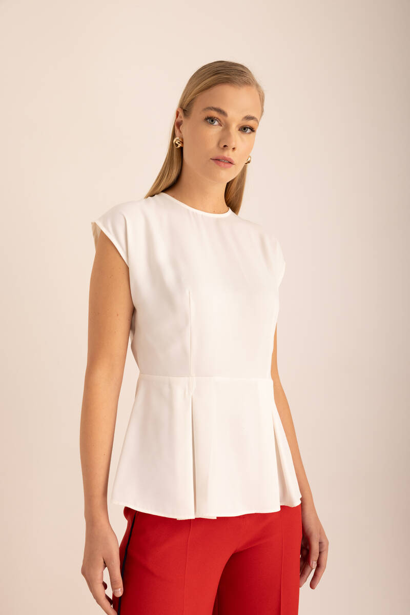 Ön Göğüs Kısmı Pile ve Parça Detaylı Bluz