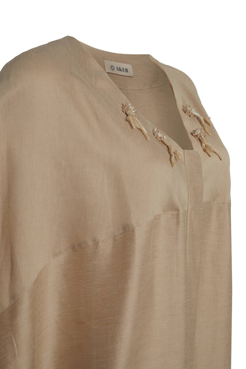 Ekru Rahat Kesim İşleme Detaylı Tunik