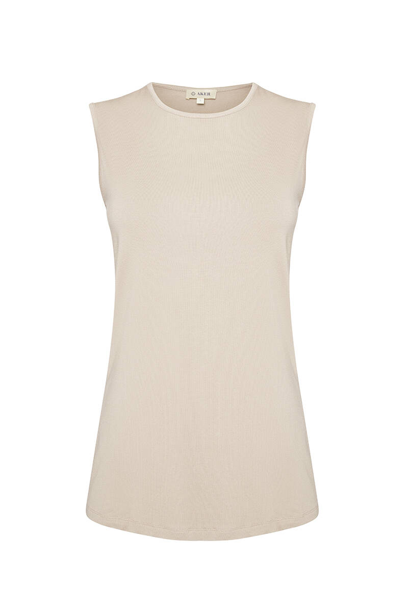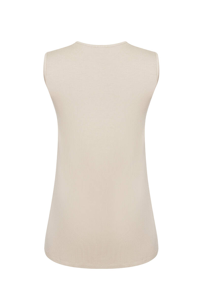Ekru Sıfır Kollu Bisiklet Yaka Body