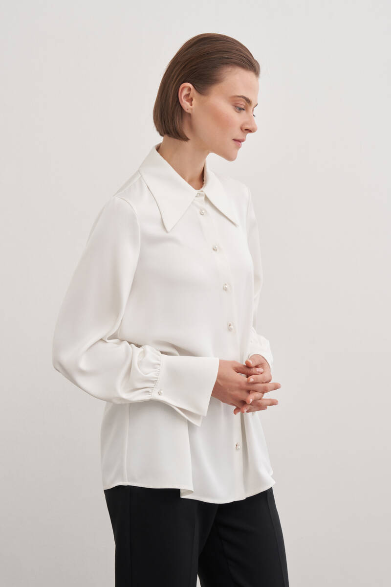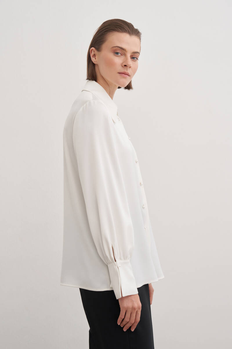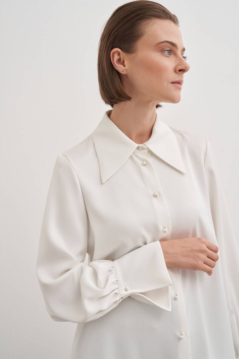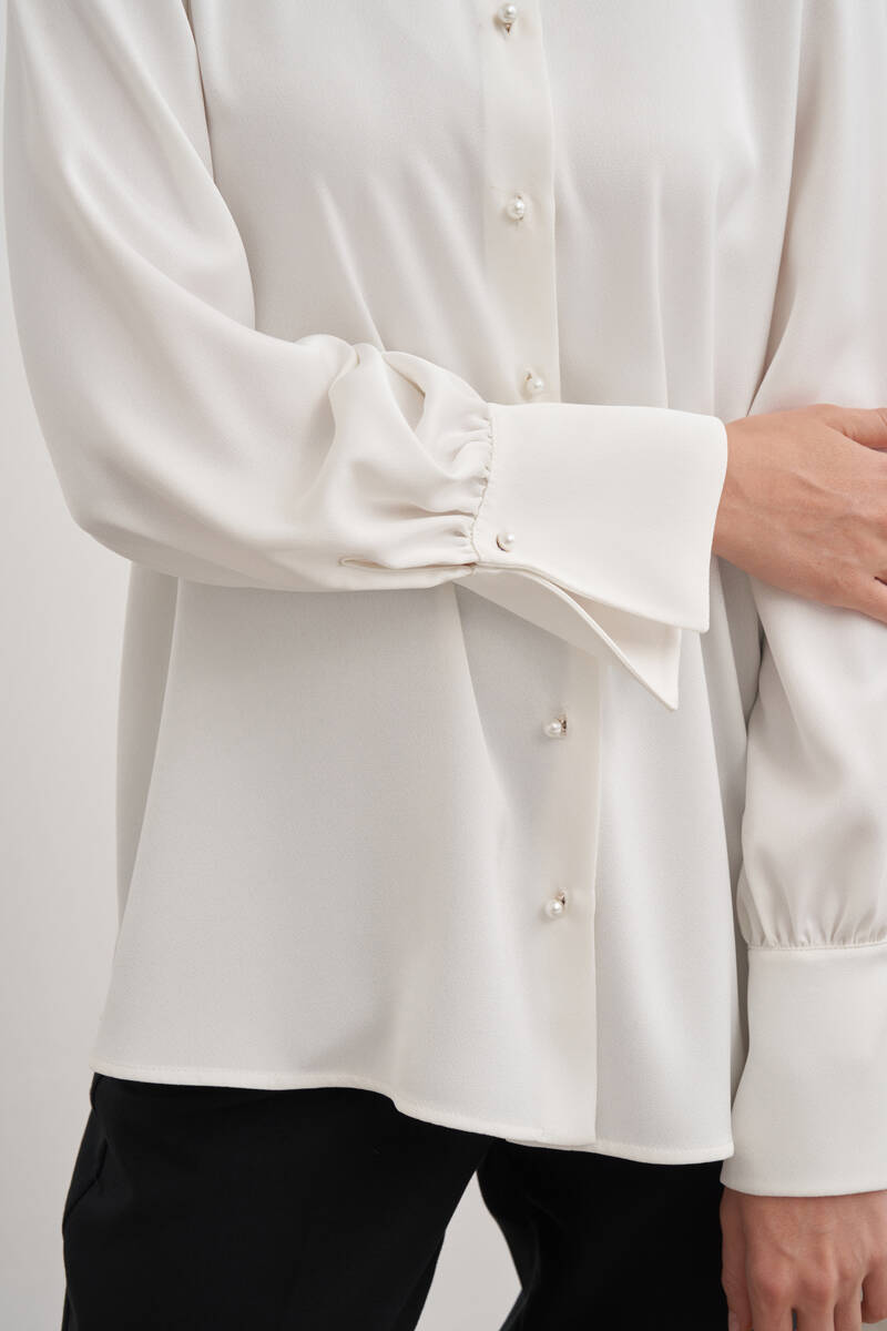 Ekru Katlama Detaylı Bluz