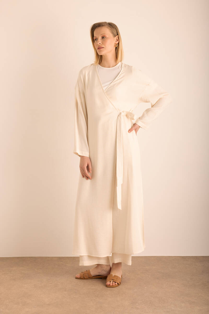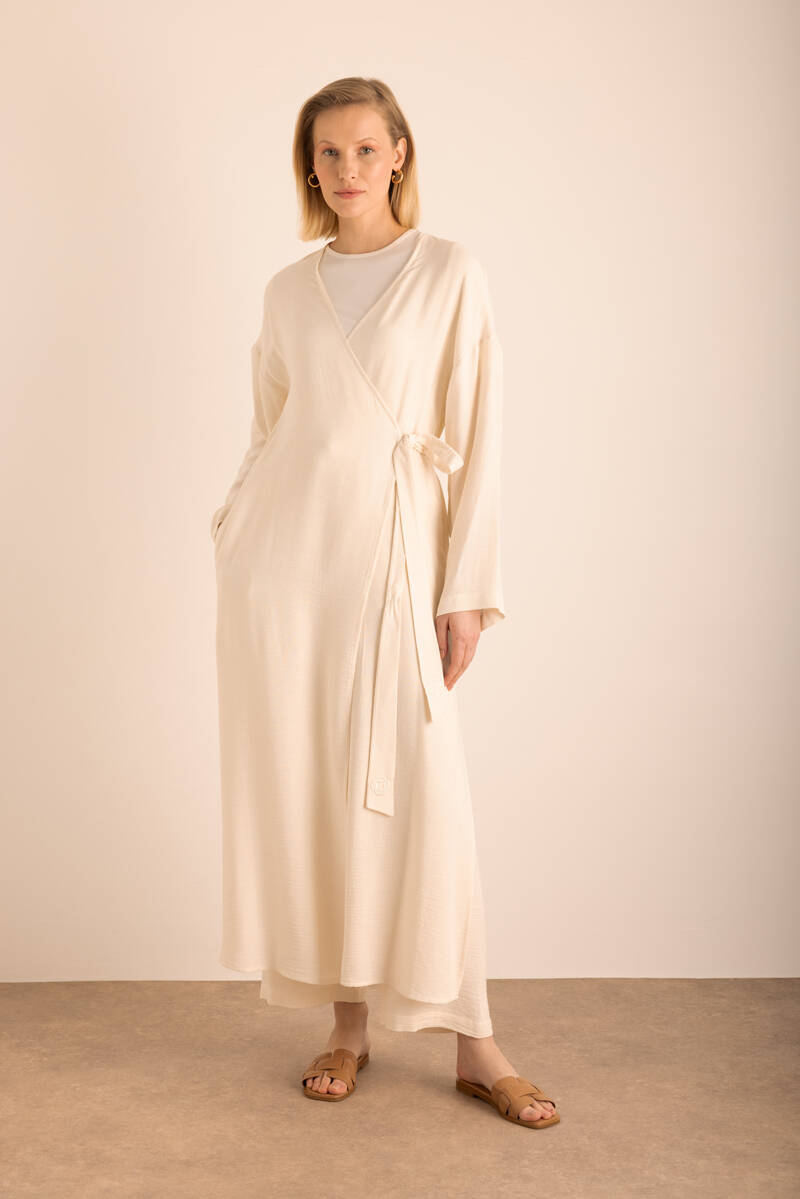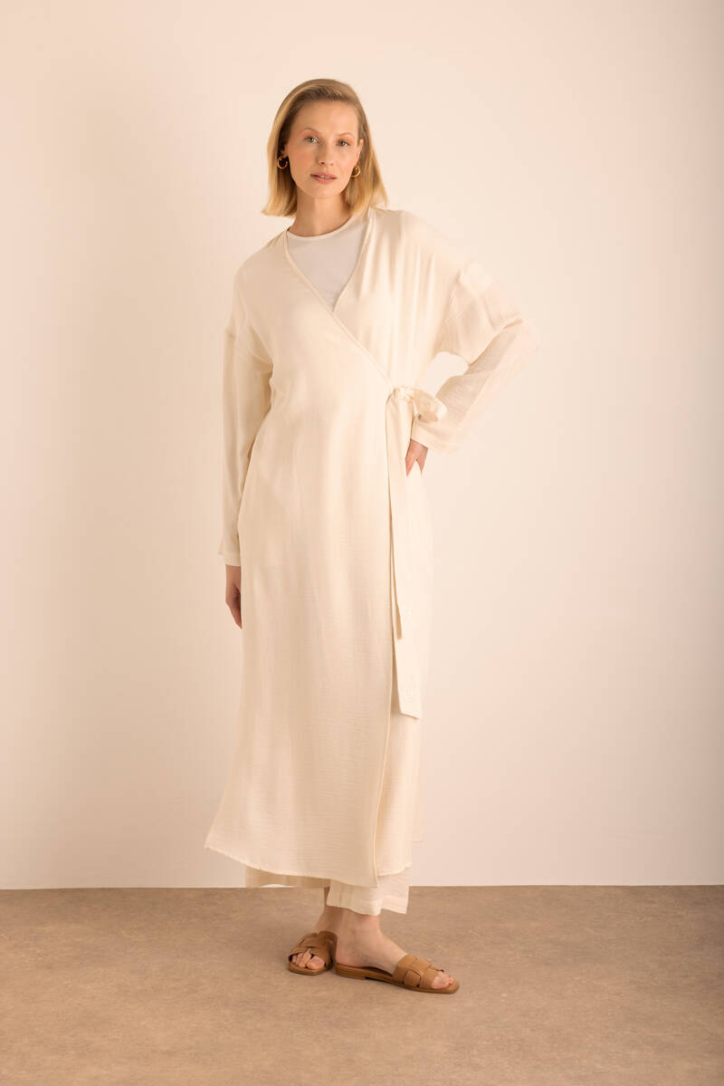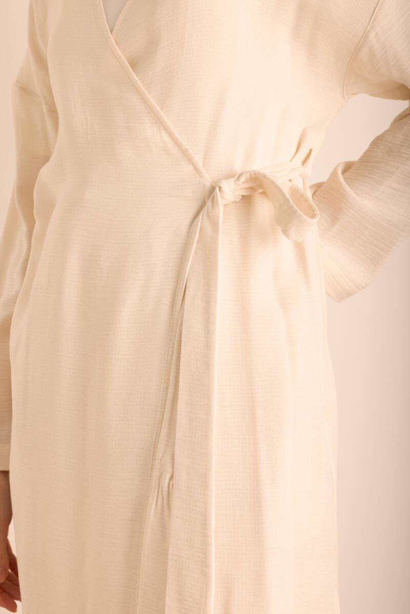 Ekru Viscon Cotton , Yandan Bağlamalı Sabahlık