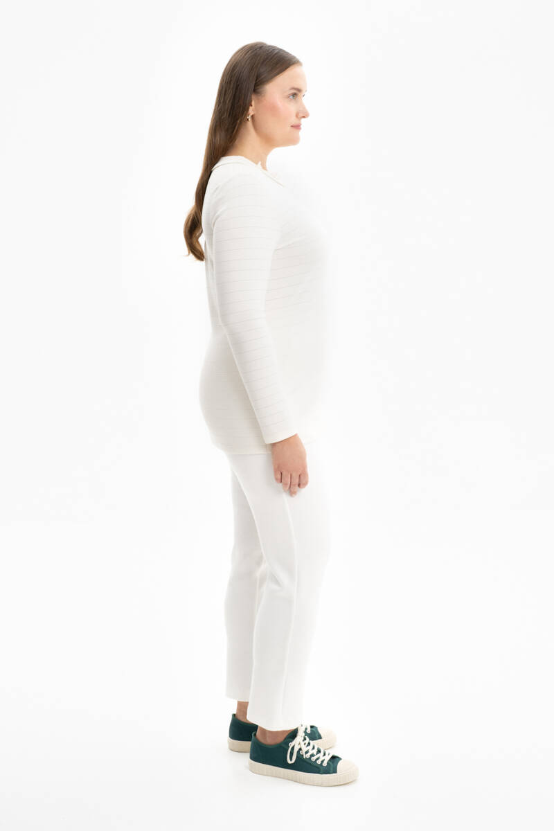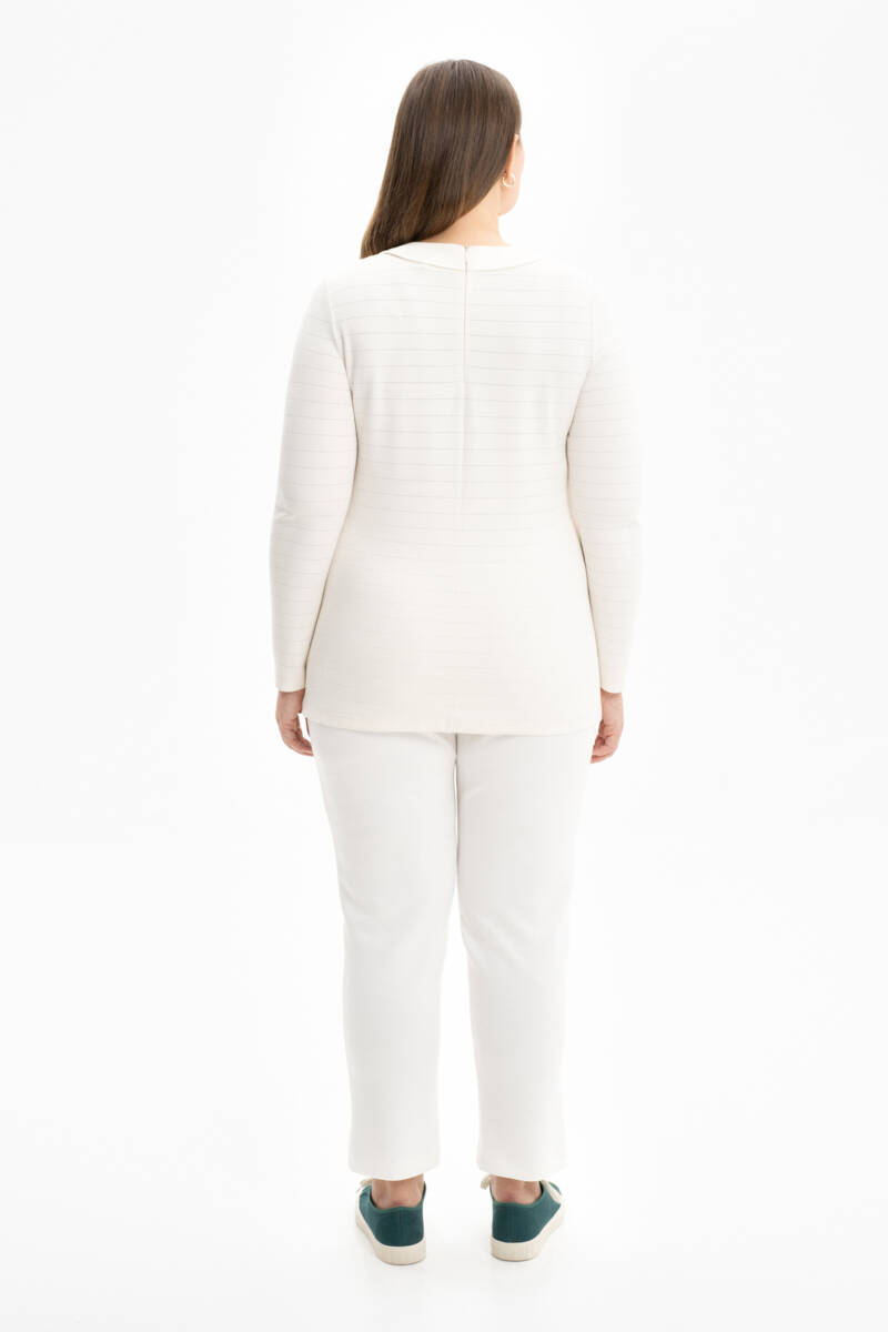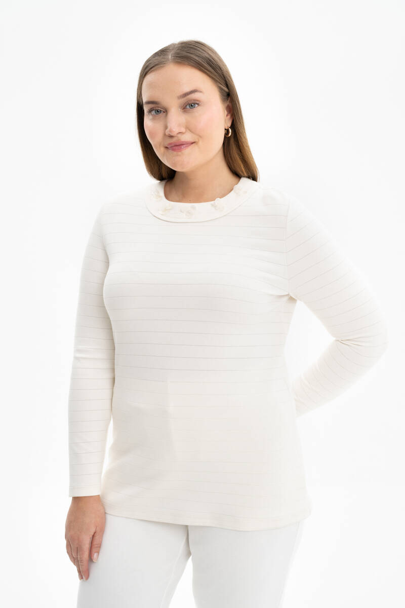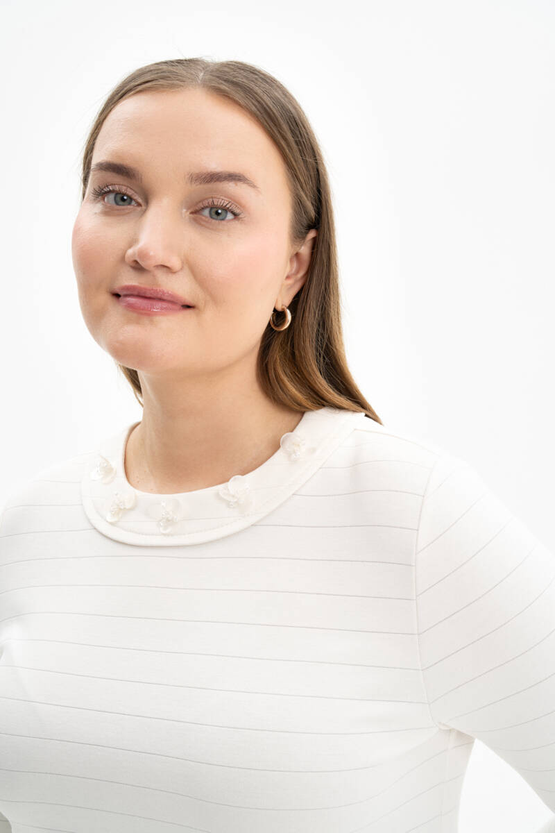 Ekru Yakası İşleme Detaylı Çizgili Bluz