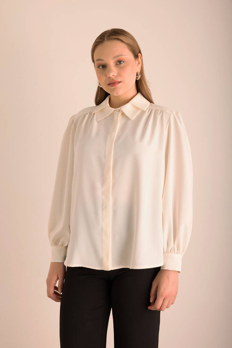 Pembe Yakası Pili ve İşleme Detaylı Dokuma Bluz
