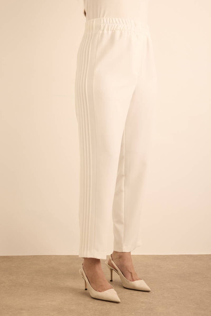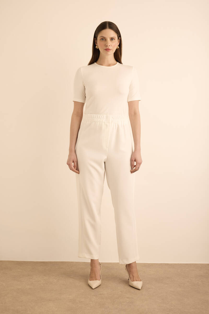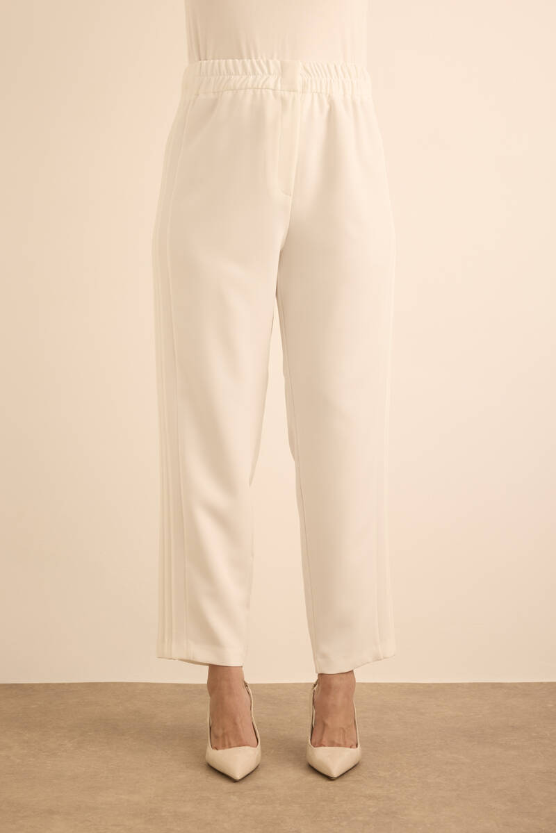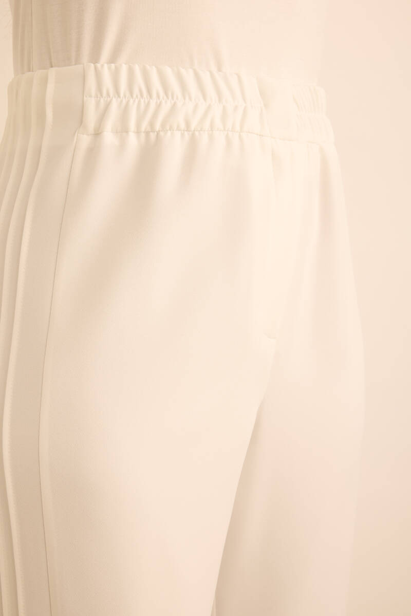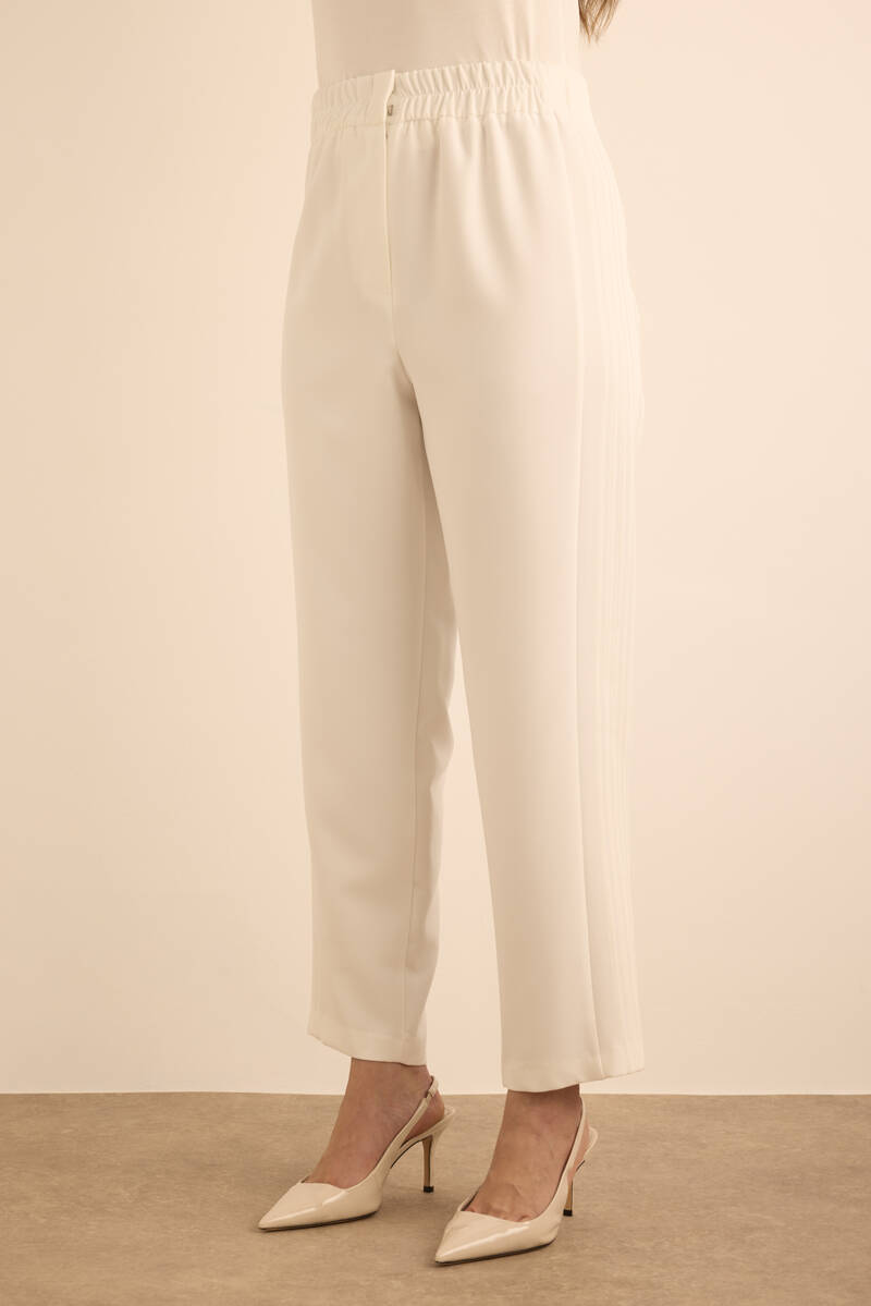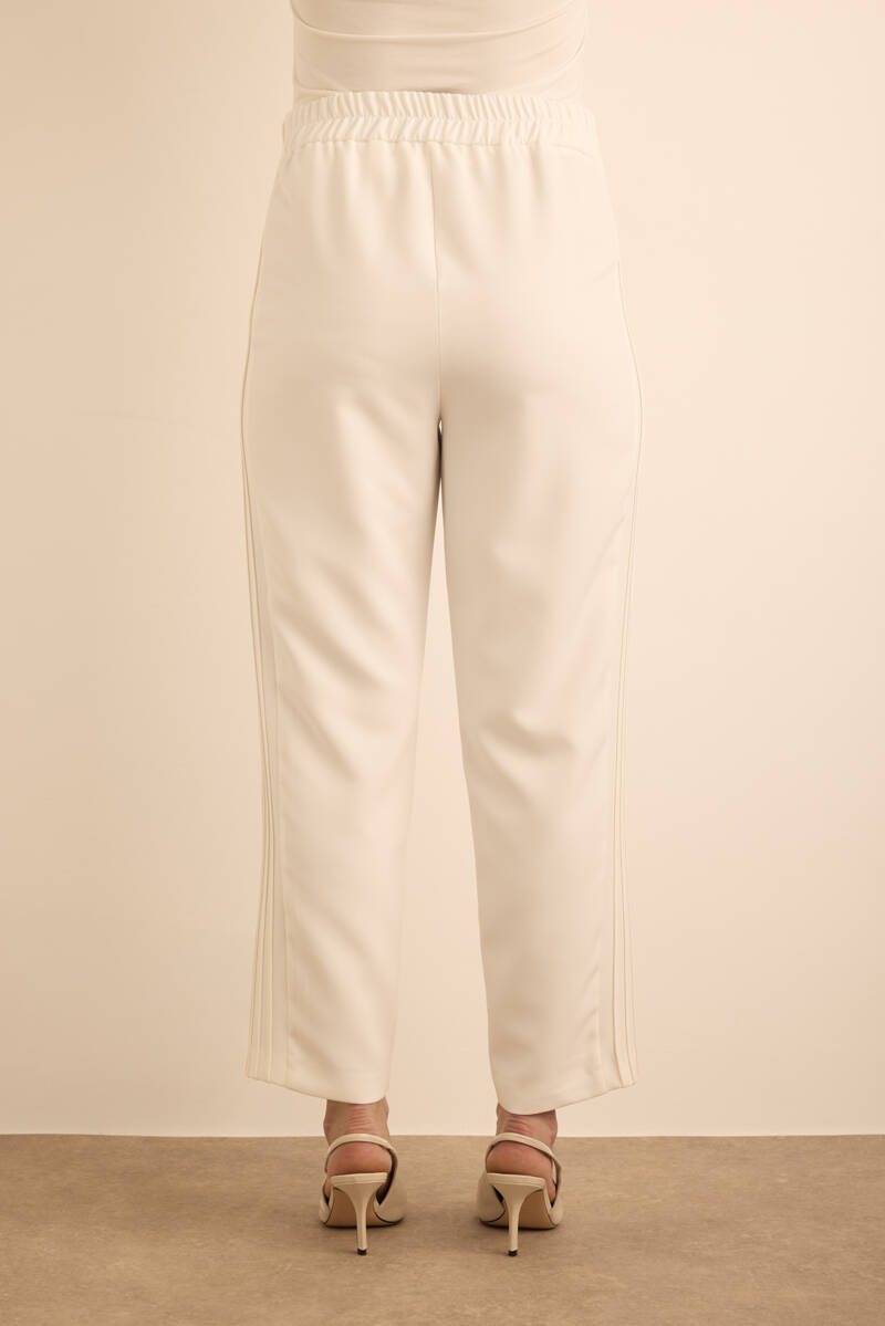 Ekru Yanları Dikiş Detaylı Dokuma Pantolon