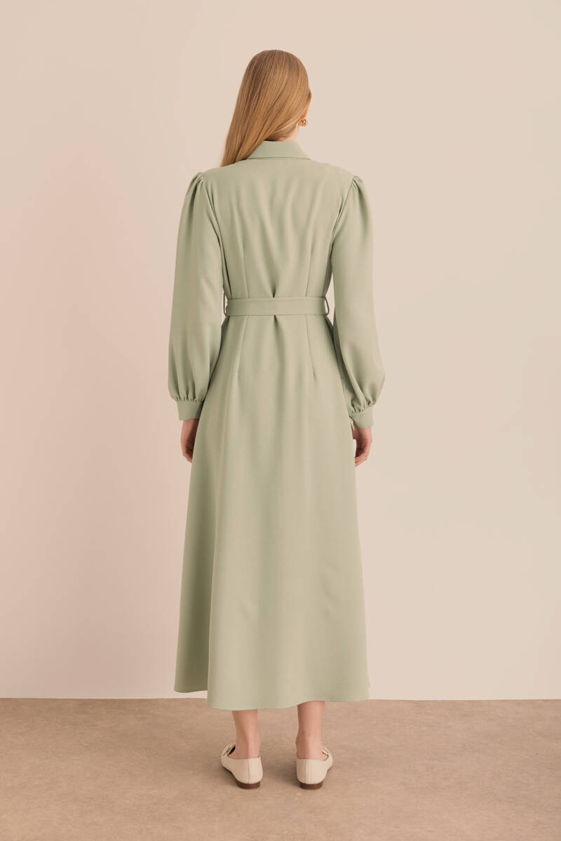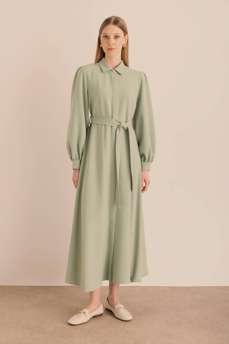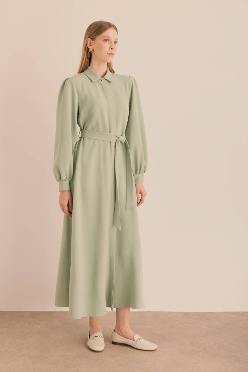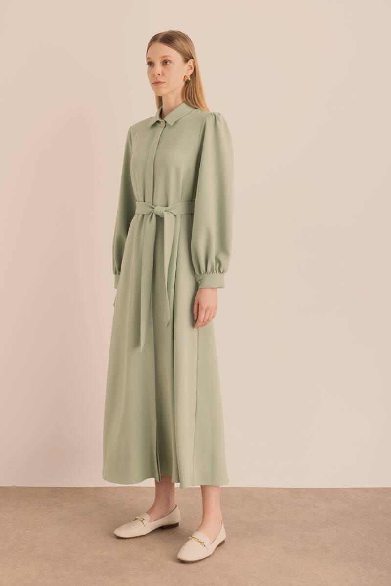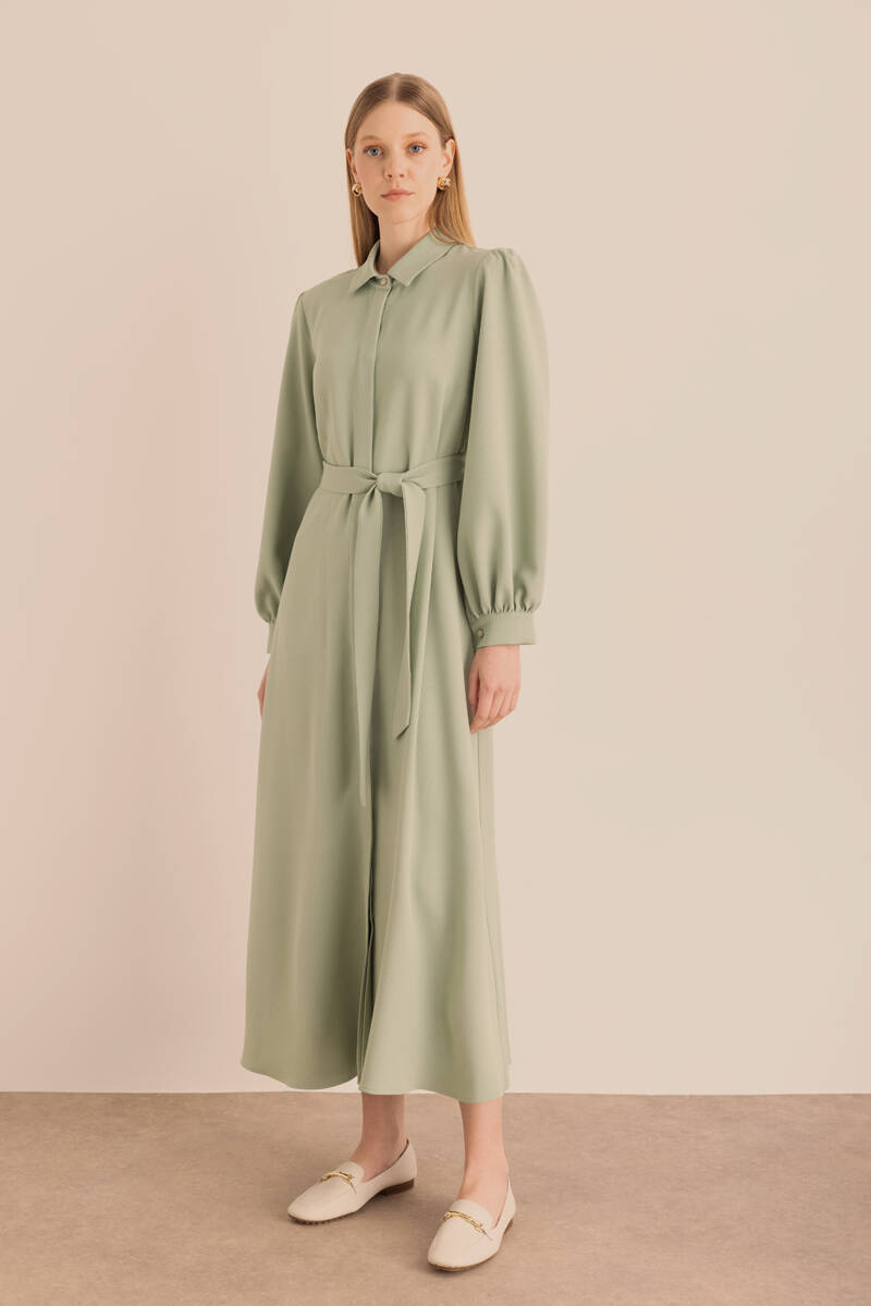 Ekru Kumaşı Püskül Yüzeyli Cotton Gömlek Elbise
