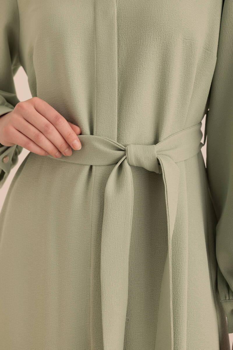 Ekru Kumaşı Püskül Yüzeyli Cotton Gömlek Elbise