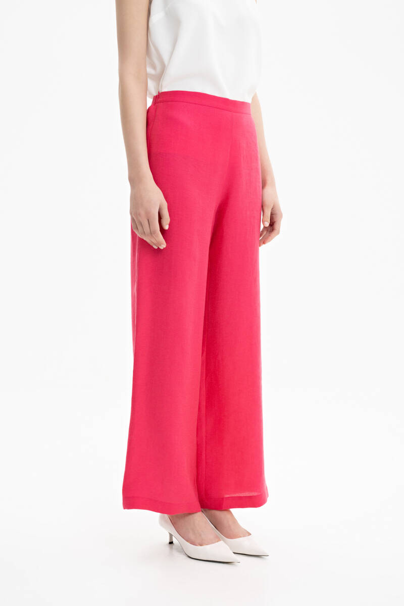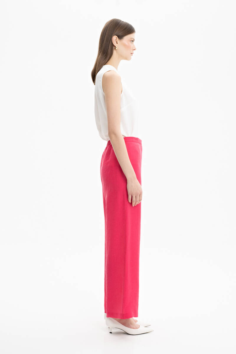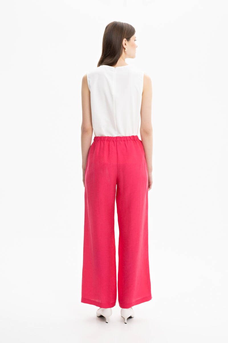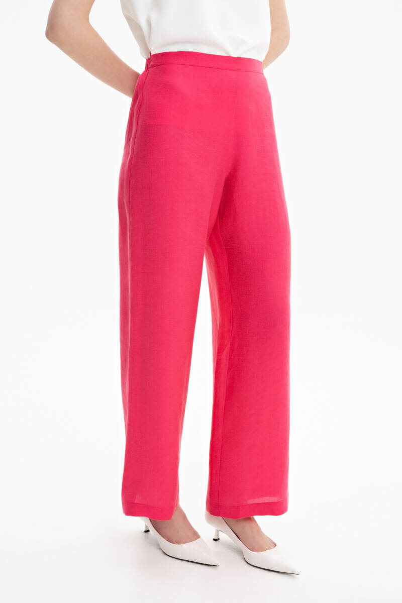 Fuşya Bol Kesim Keten Pantolon