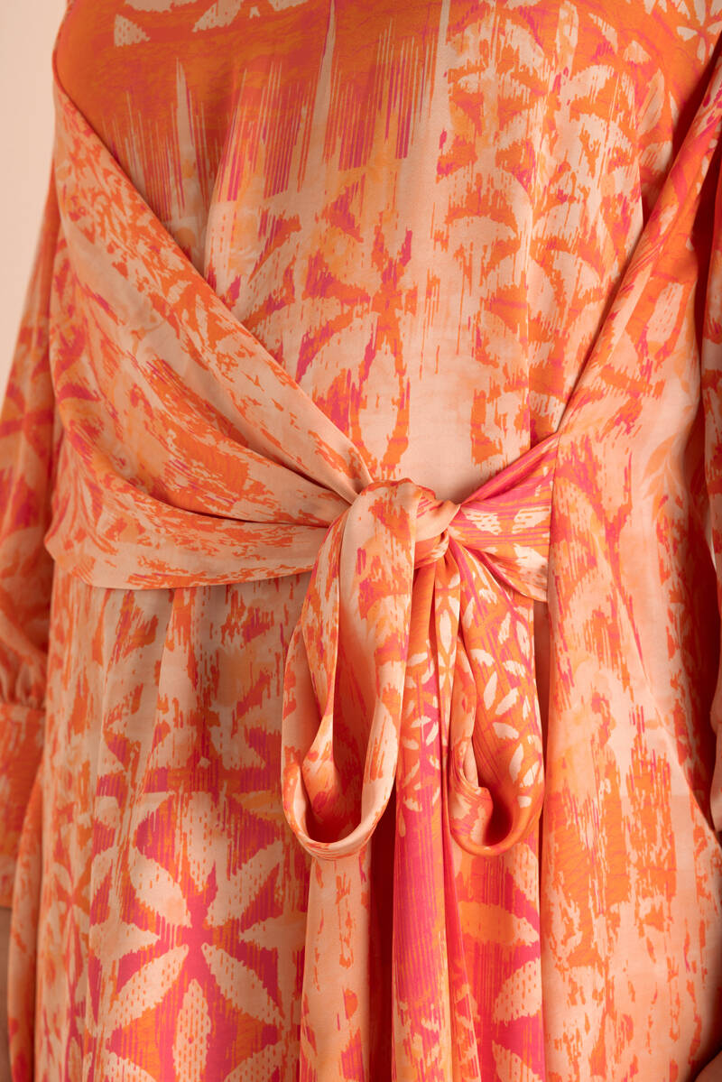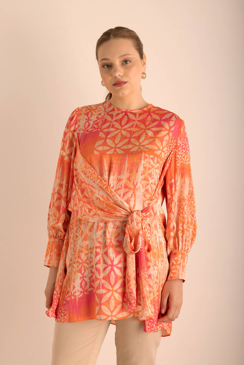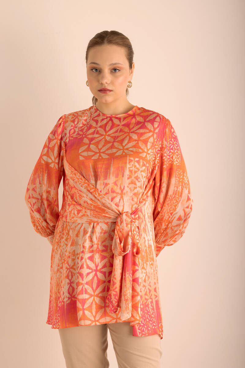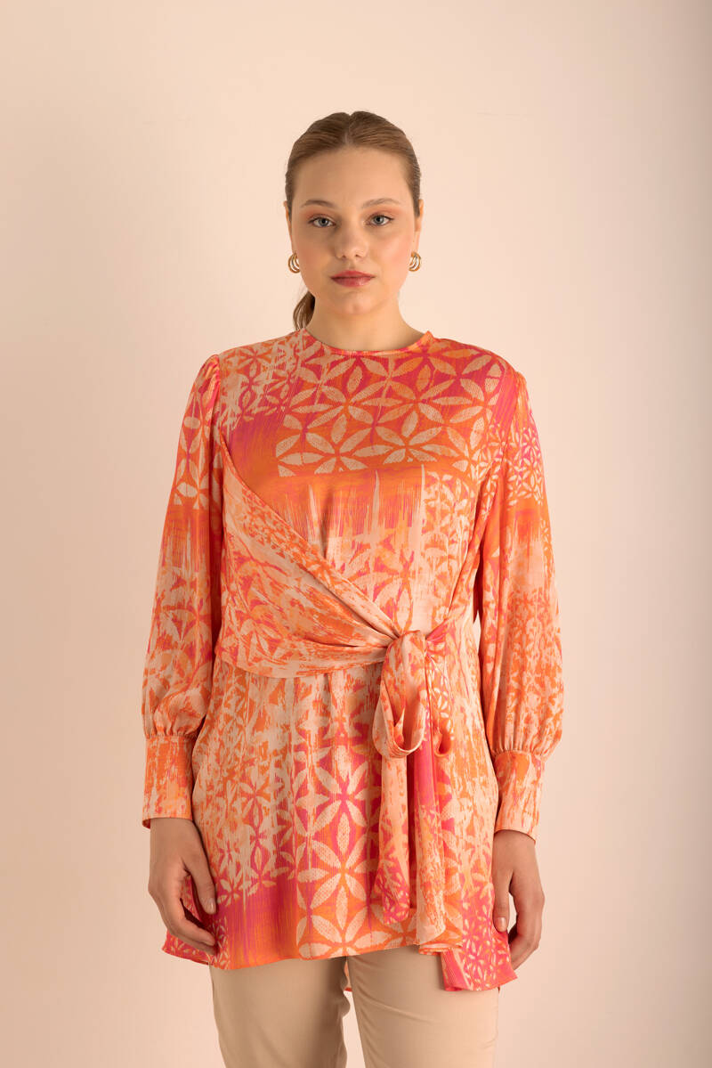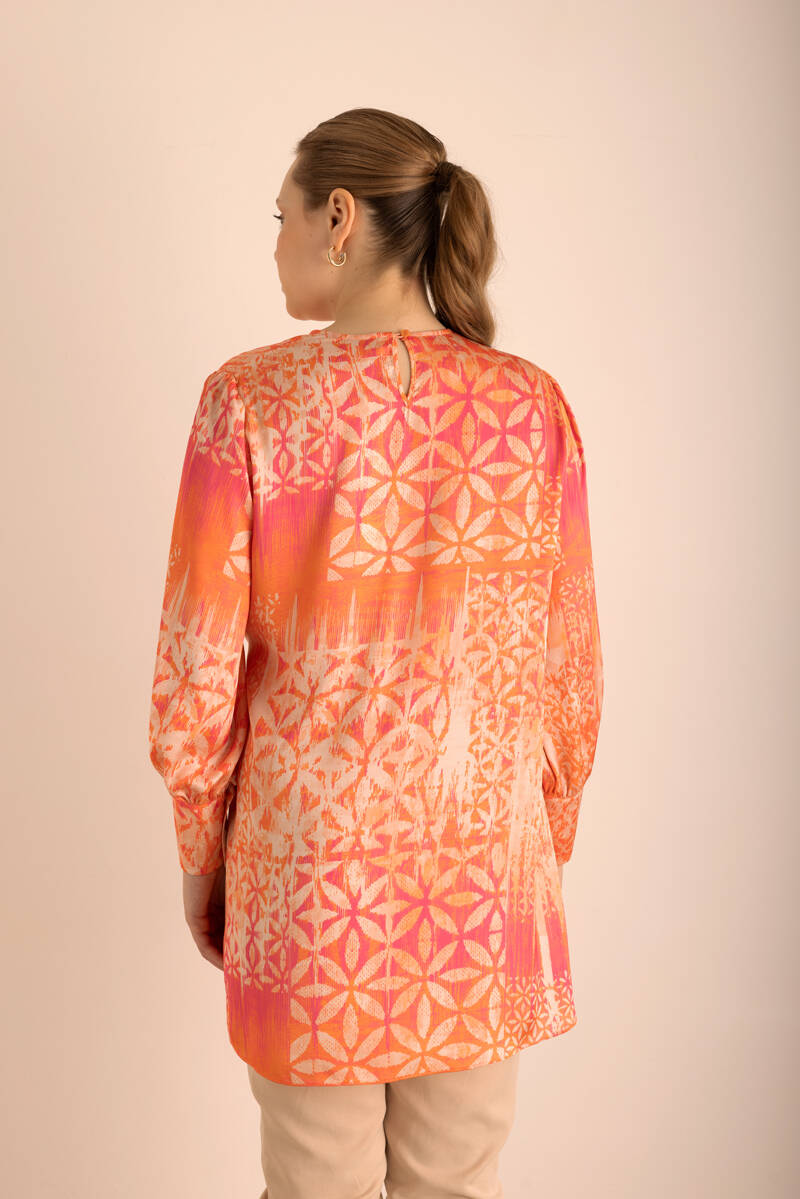 Turuncu Geometrik Pano Desenli Tunik