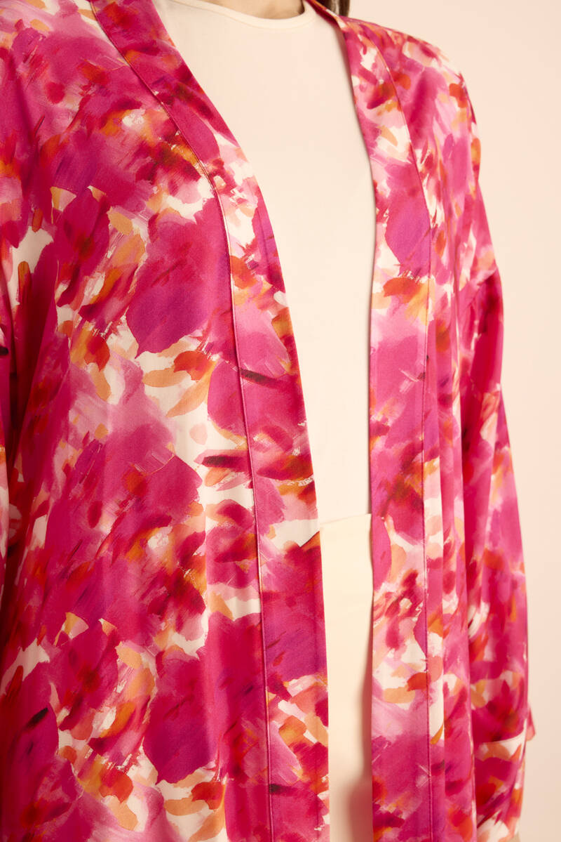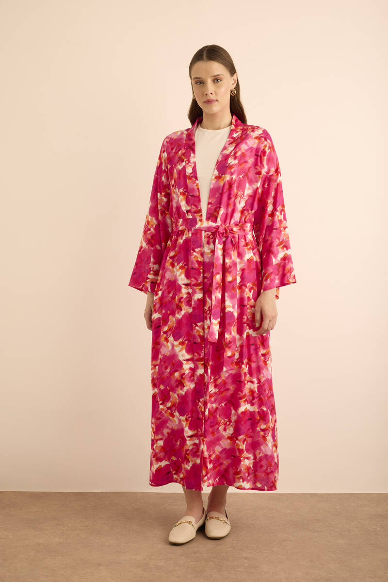 Mercan Seyyar Kuşaklı Keten Kımono