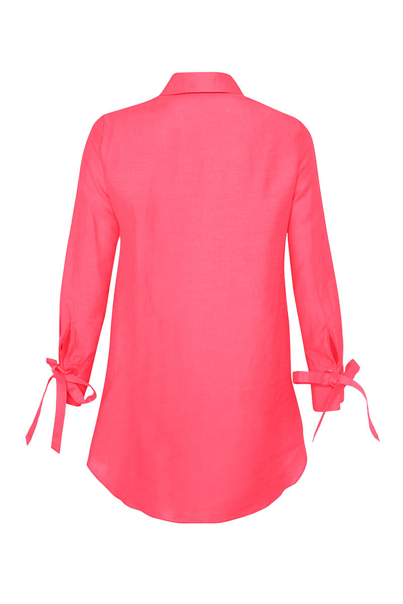 Fuşya Kuşgözlü Keten Gömlek Tunik