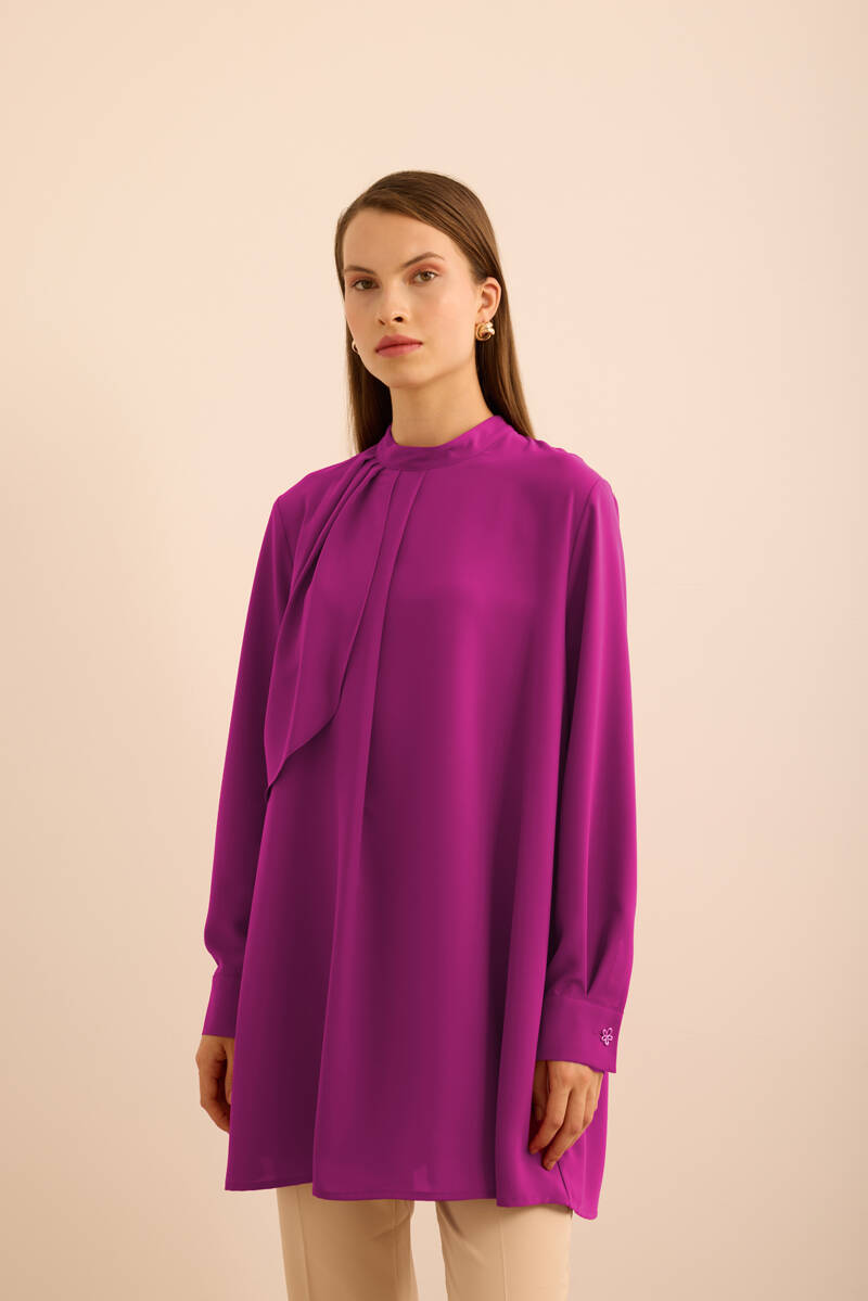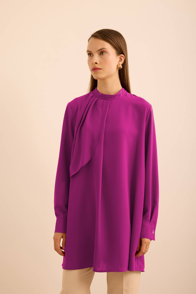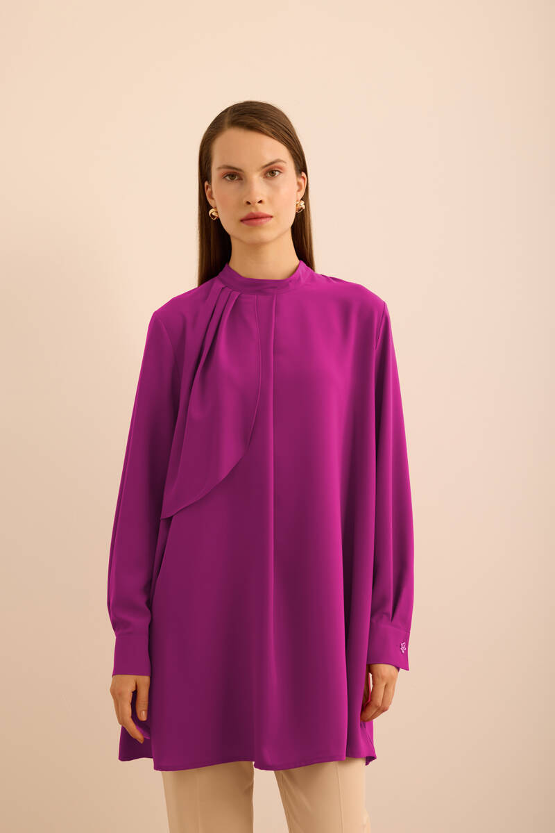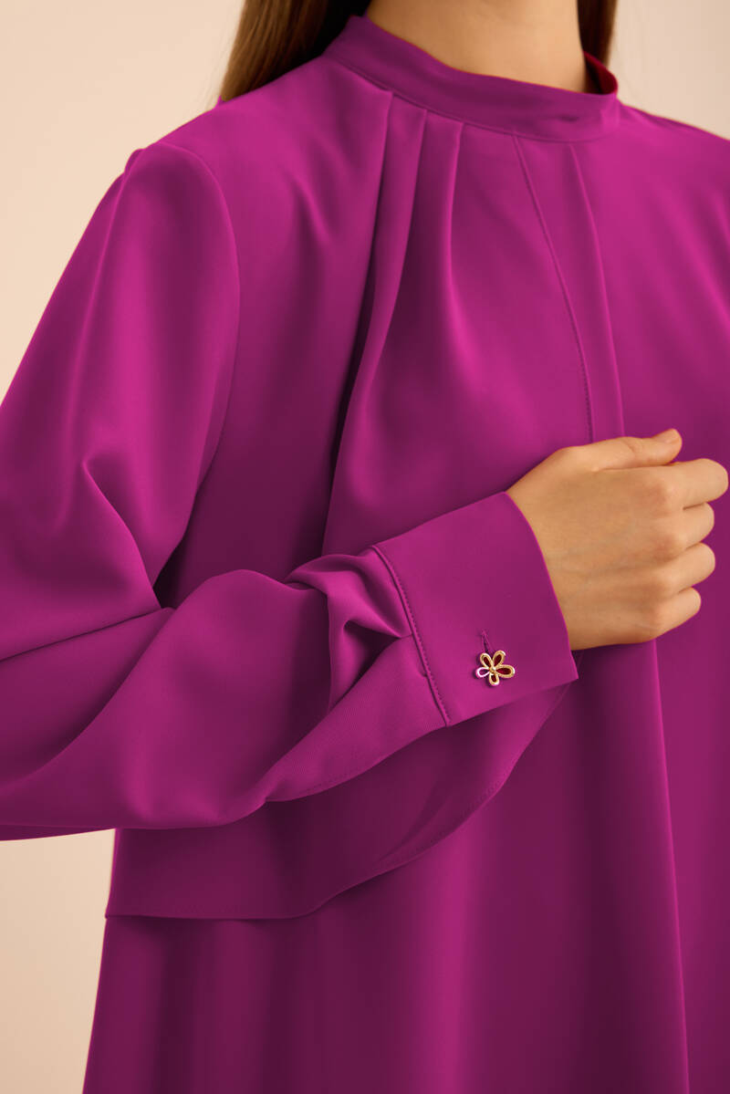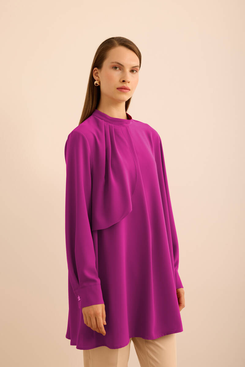 Saks Ön Göğüs Kısmı Pile ve Parça Detaylı Bluz
