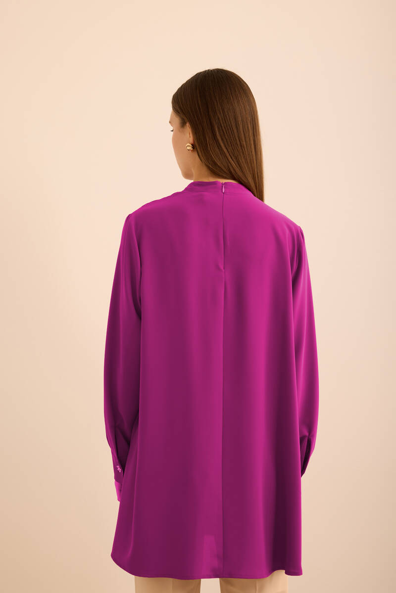 Fuşya Rahat Form Keten Bluz