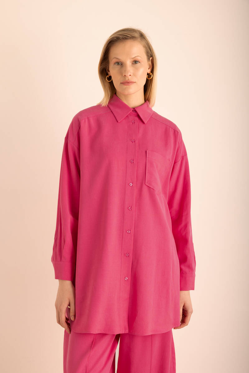 Fuşya Önden Apolet Detaylı Dokuma Tunik
