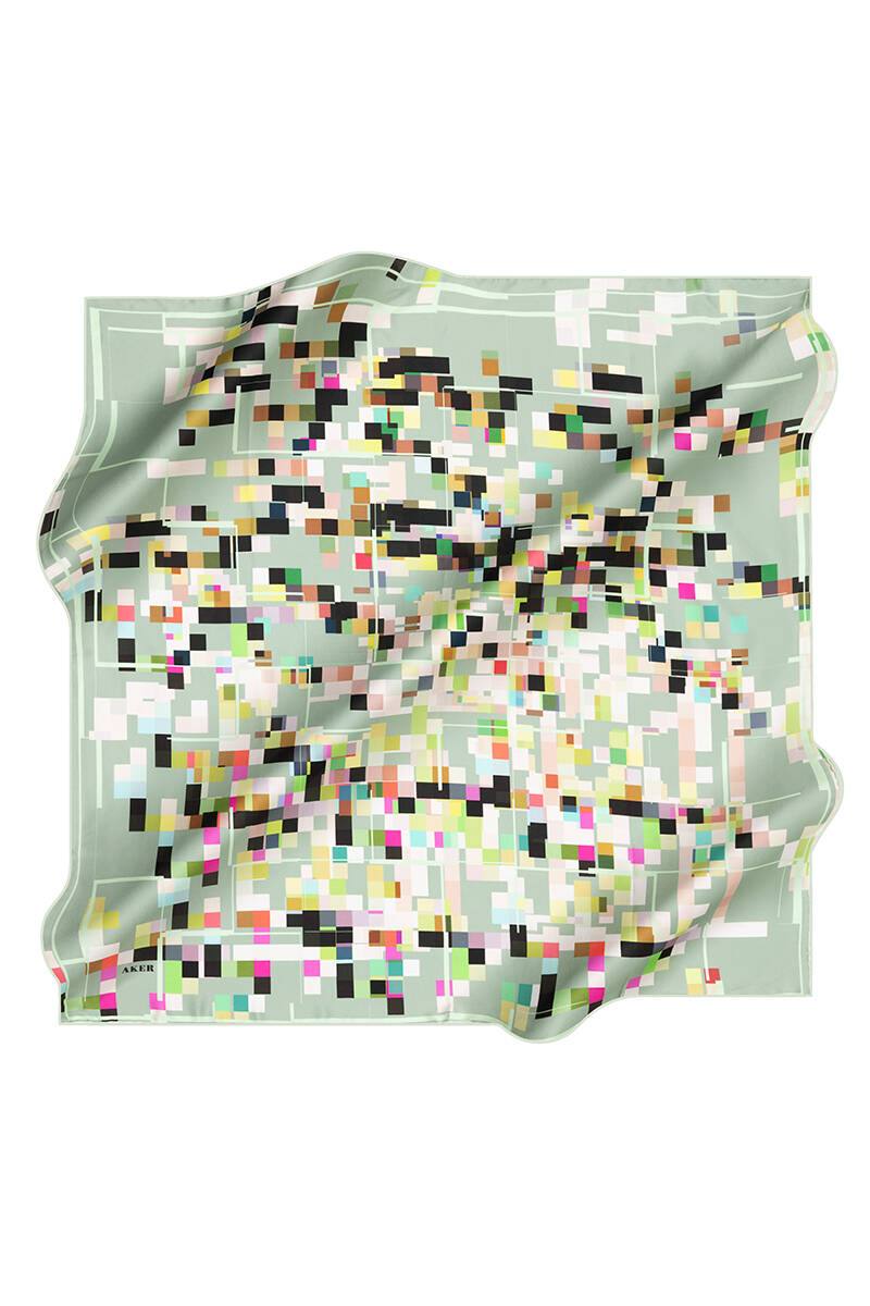 Geometrik Desenli Aker İpek Krep Saten Eşarp