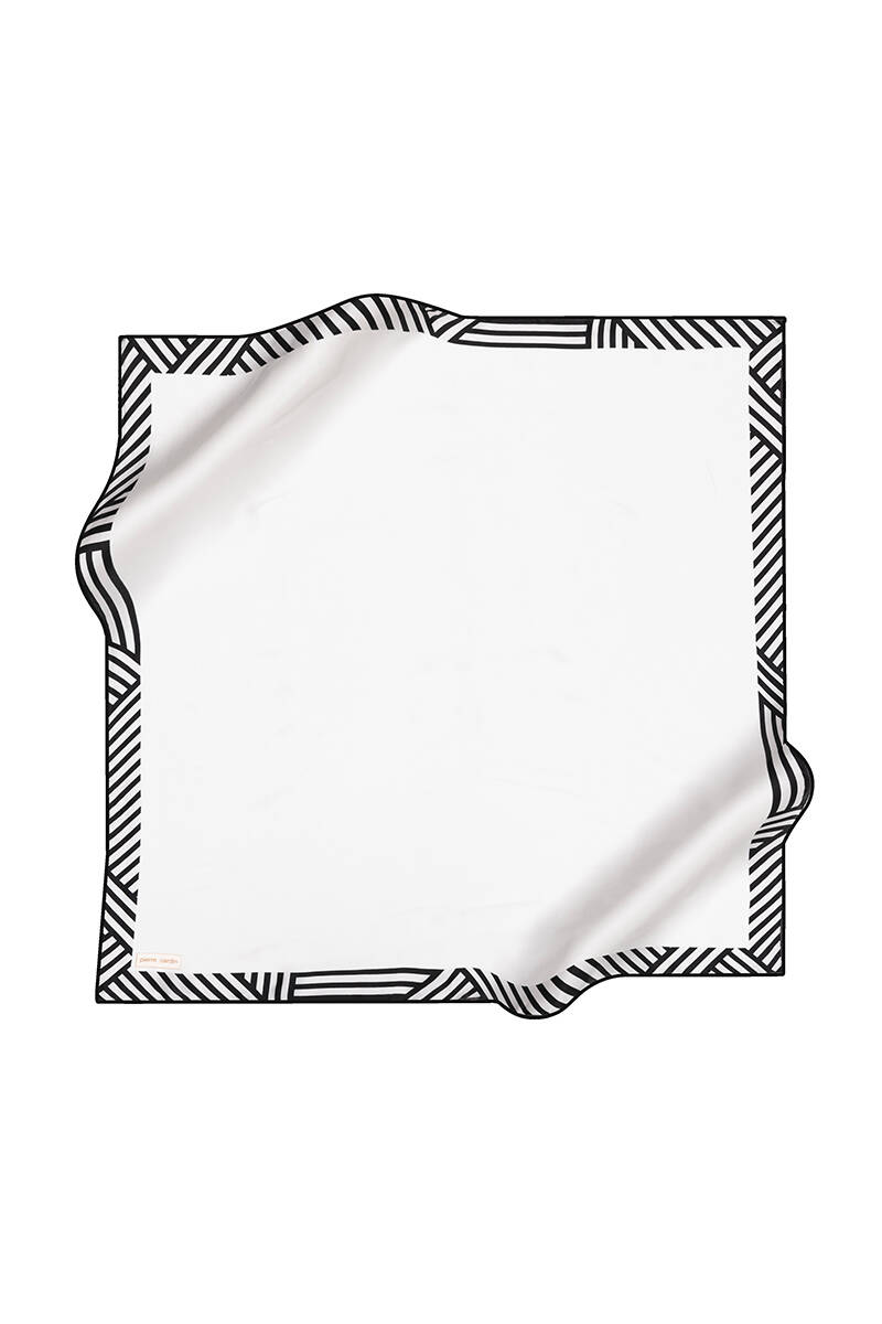 Beyaz Geometrik Desenli İpek Krep Saten Eşarp