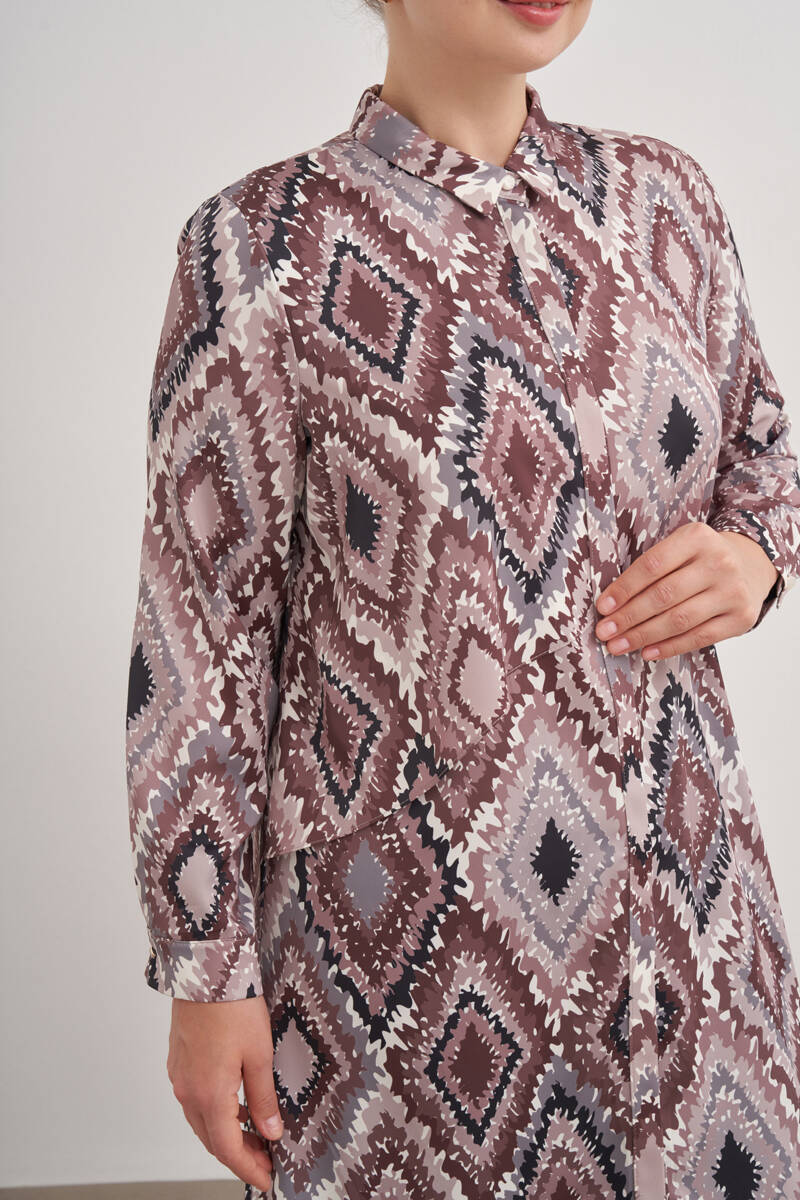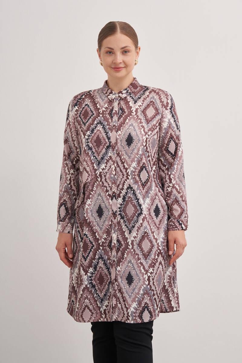 Kahverengi Yakası Fermuarlı Keten Tencel Tunik