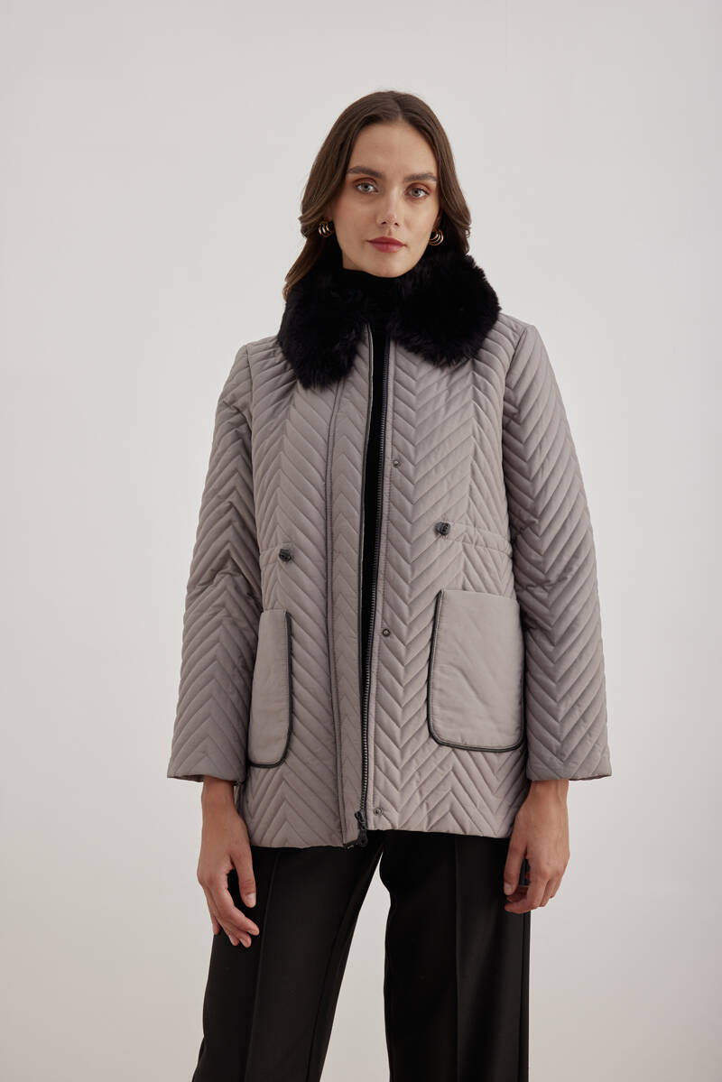 Haki 5829111 Yaka Detaylı Kapitone Kısa Mont