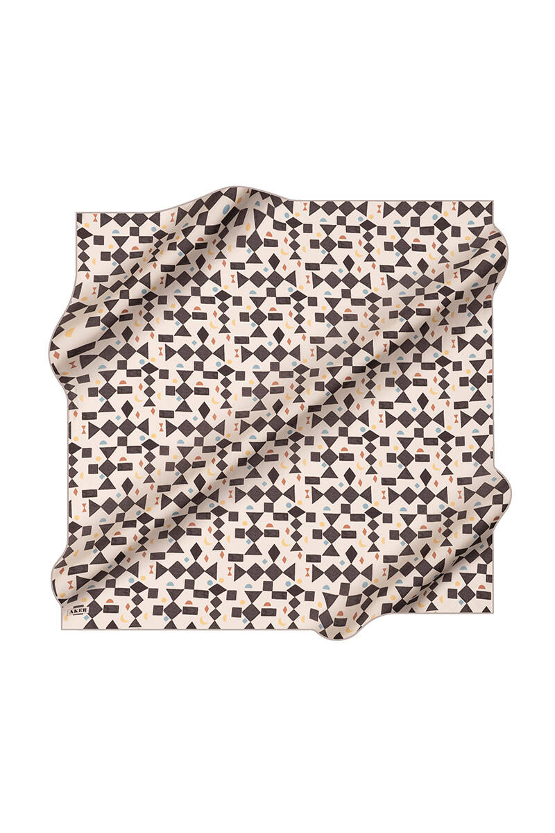 Geometrik Desenli 90X90 İpek Krep Saten Eşarp