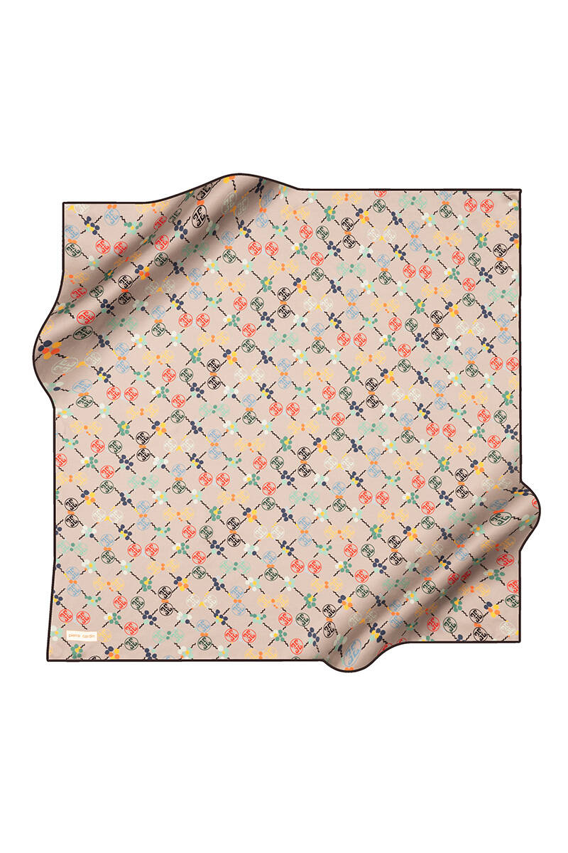 Logo Desenli 90X90 İpek Krep Saten Eşarp