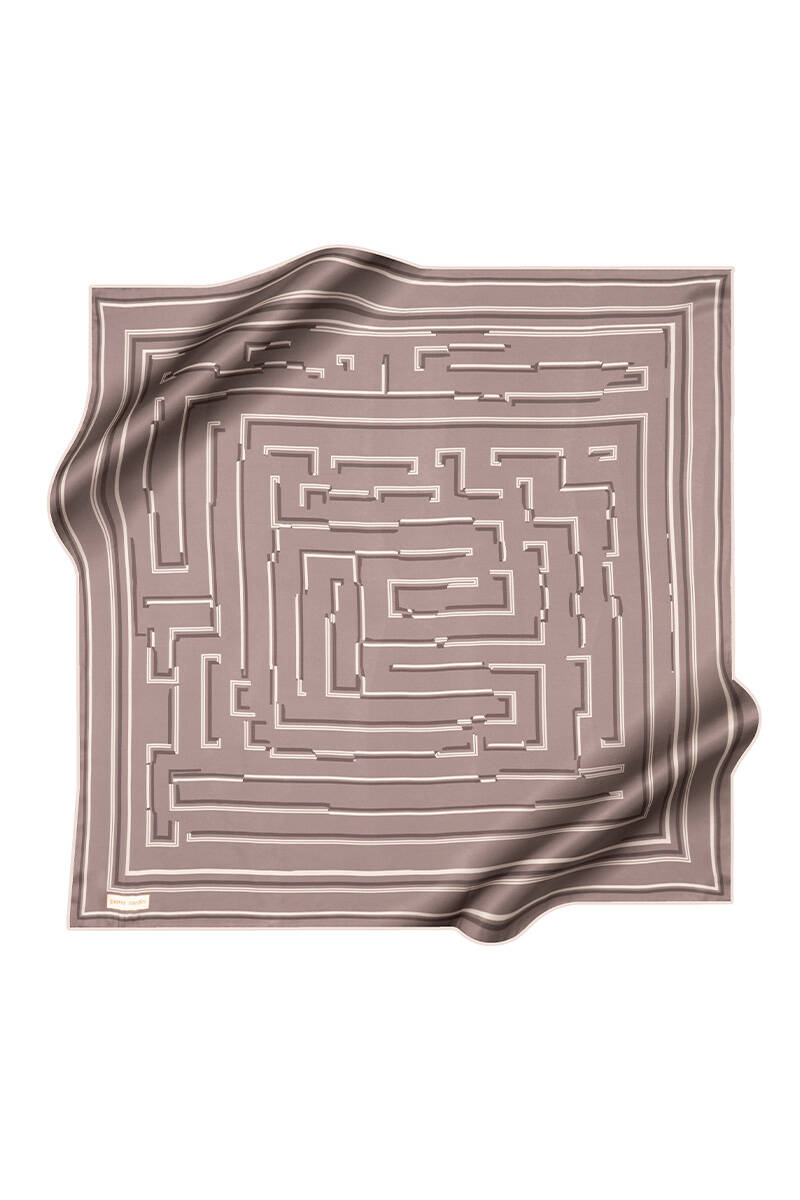 Geometrik Desenli 90X90 İpek Twill Eşarp