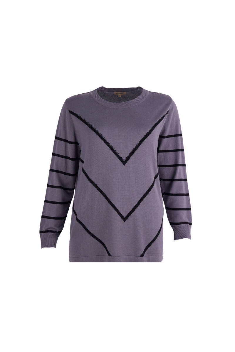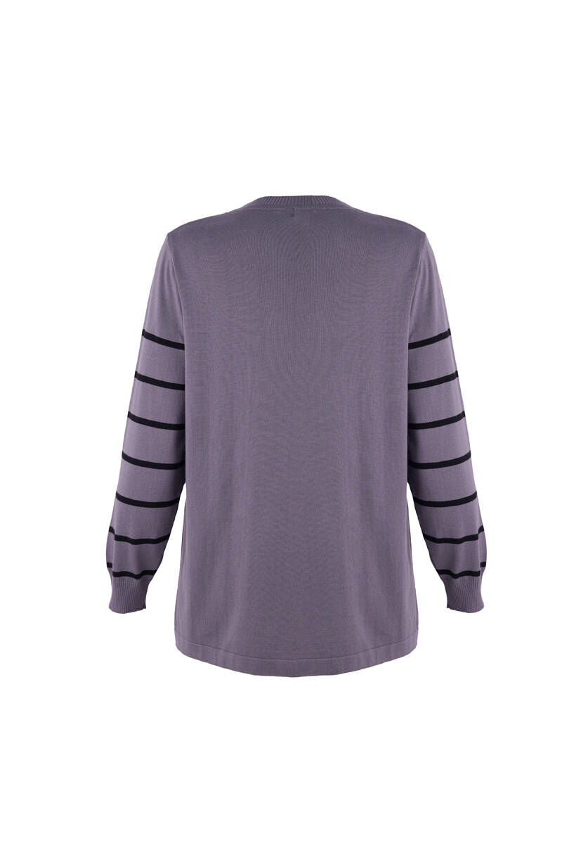 Gri Çizgili Triko Bluz