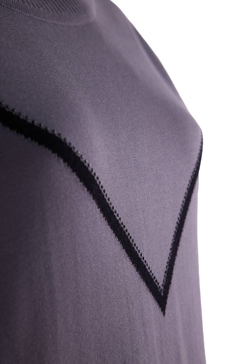 Antrasit Yaka İşlemeli Çizgili Bluz