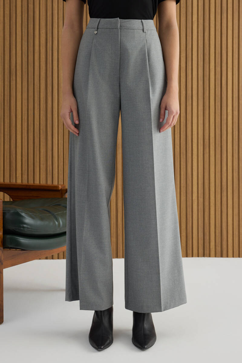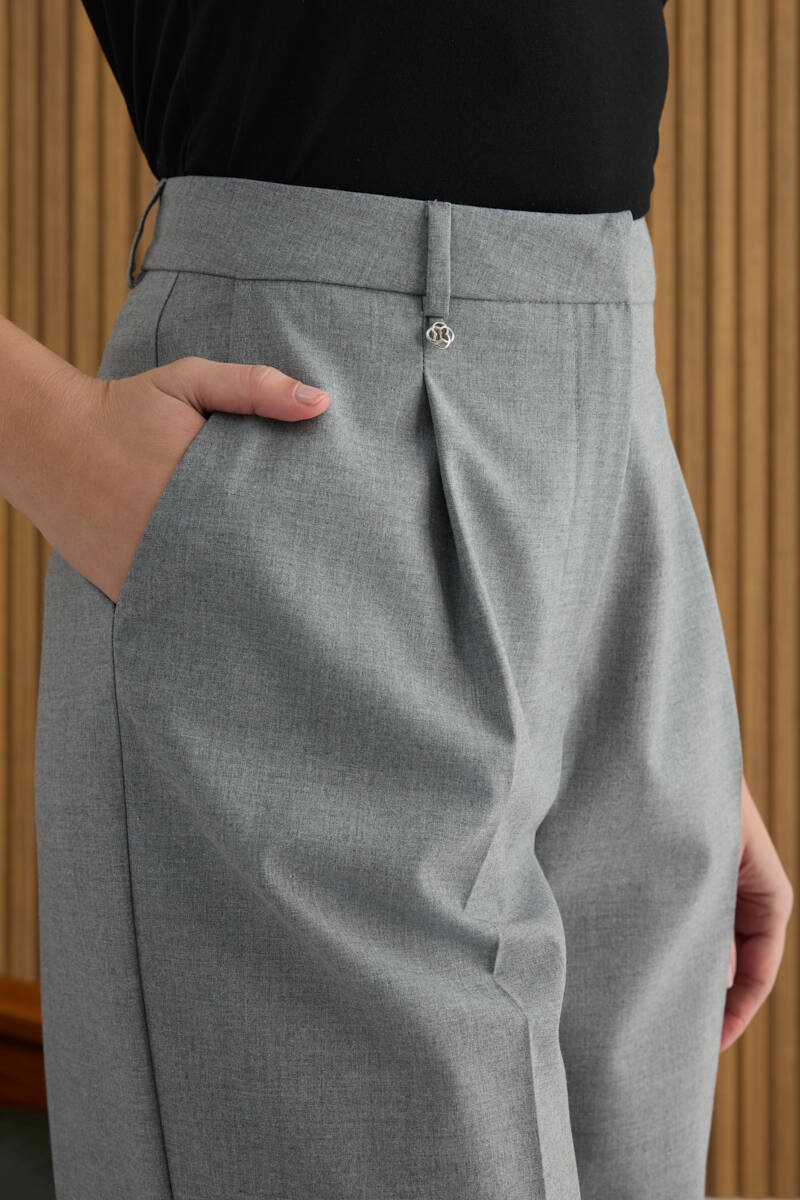Siyah Belden Metal Toka Bağlama Detaylı Dokuma Pantolon