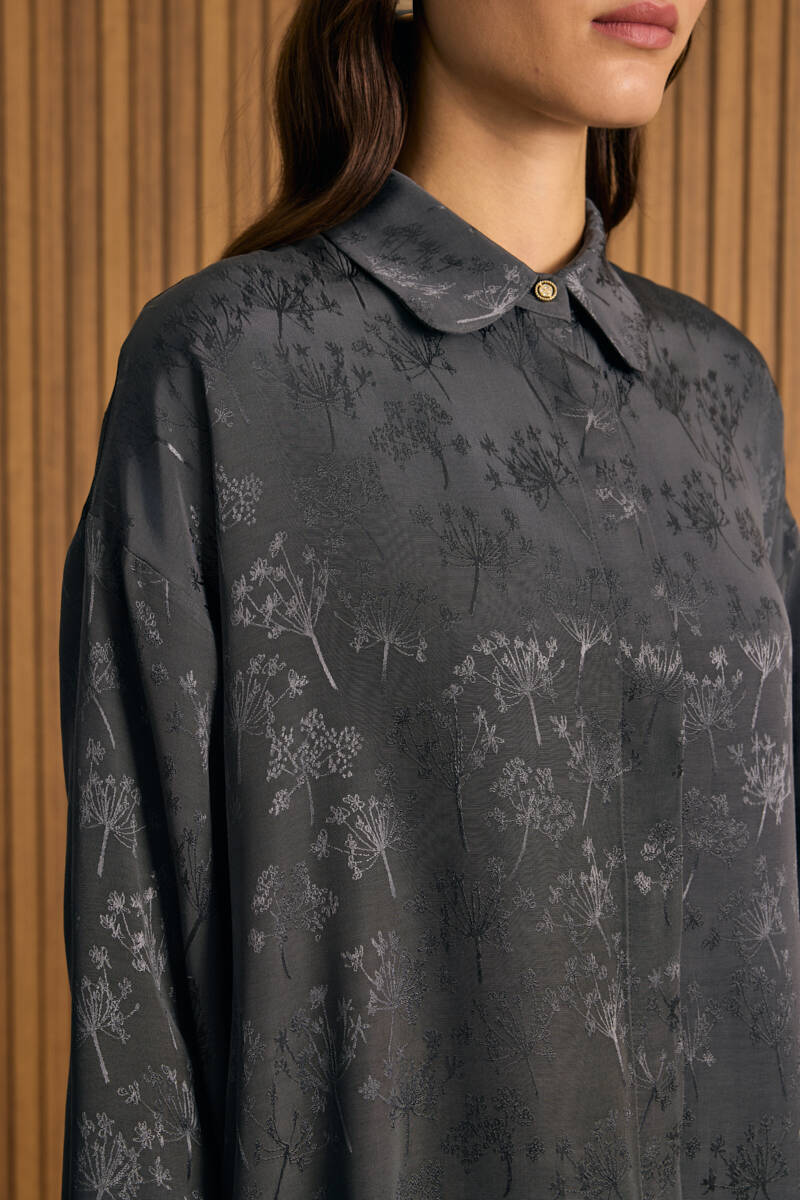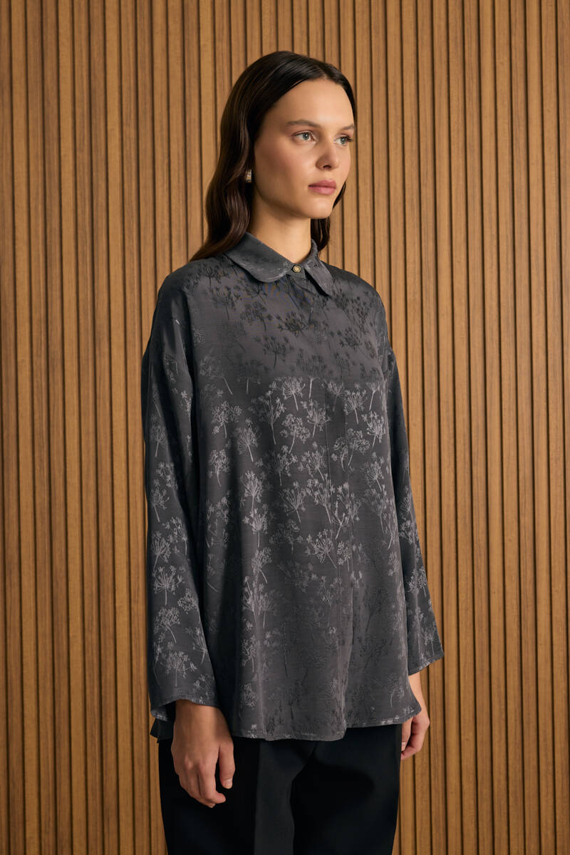 Gri Dokusu Desenli Rayon Gömlek