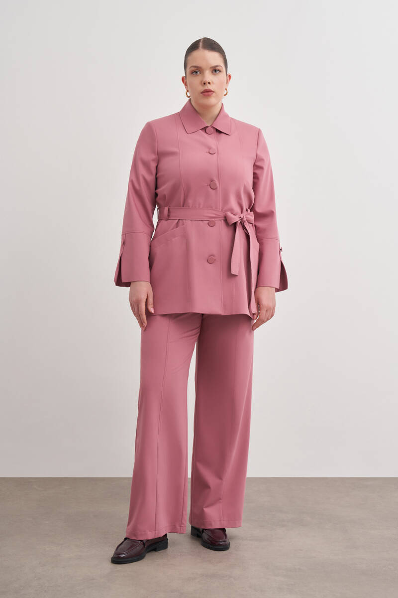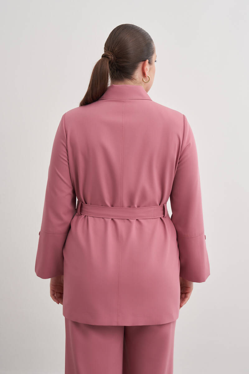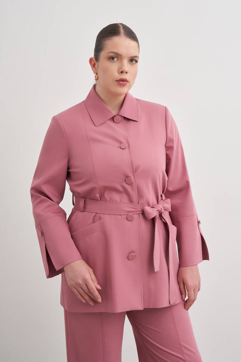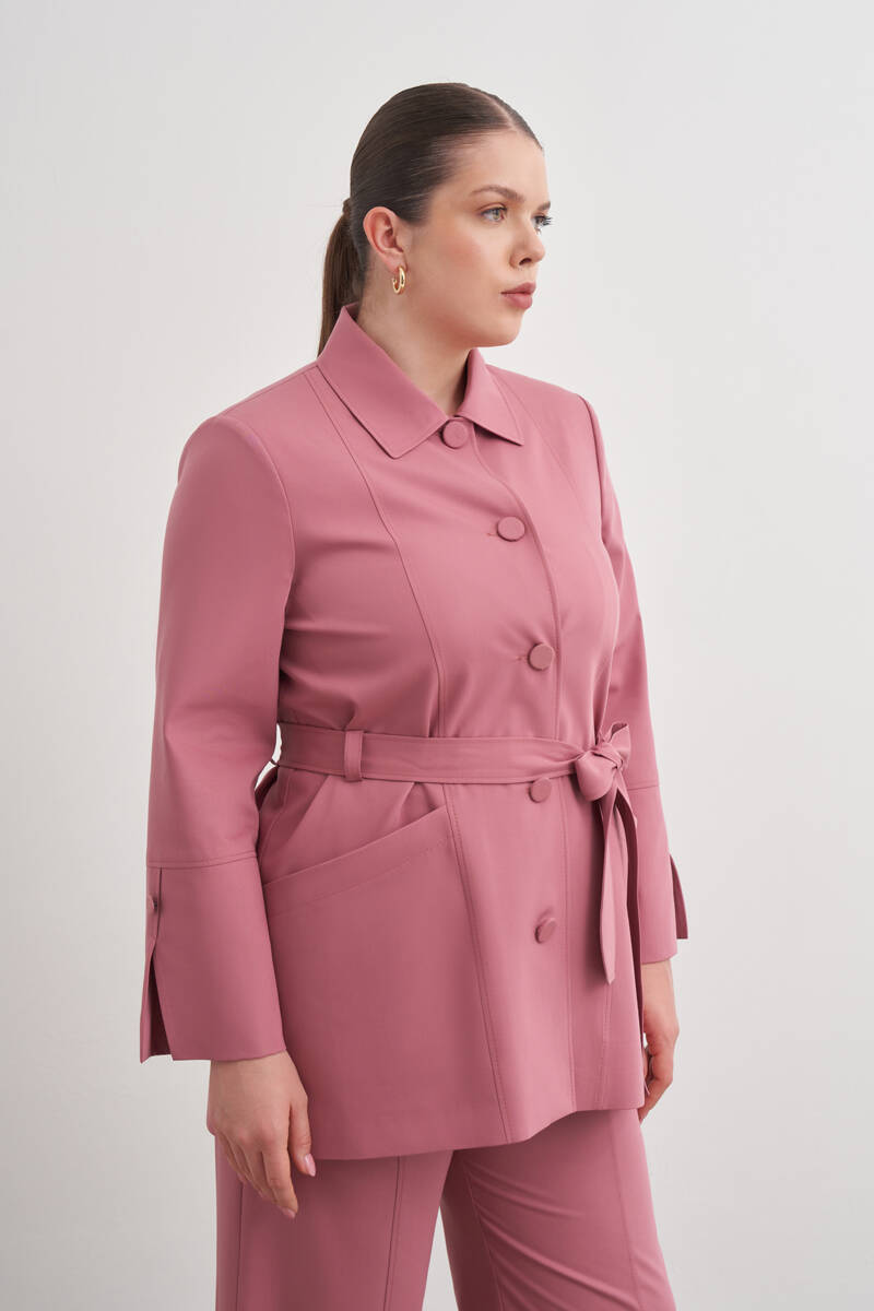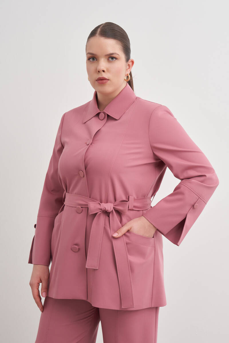 Gül Kurusu Kemerli Önden Düğmeli Dokuma Kap