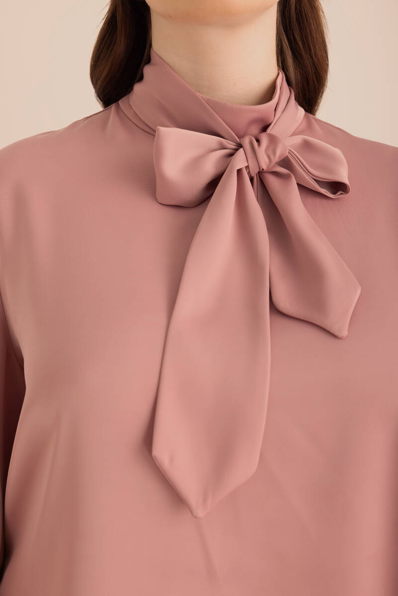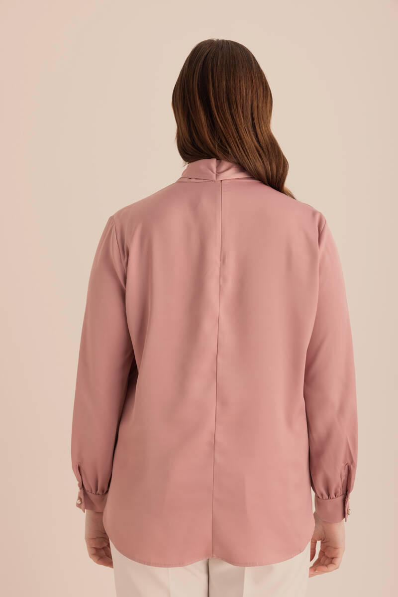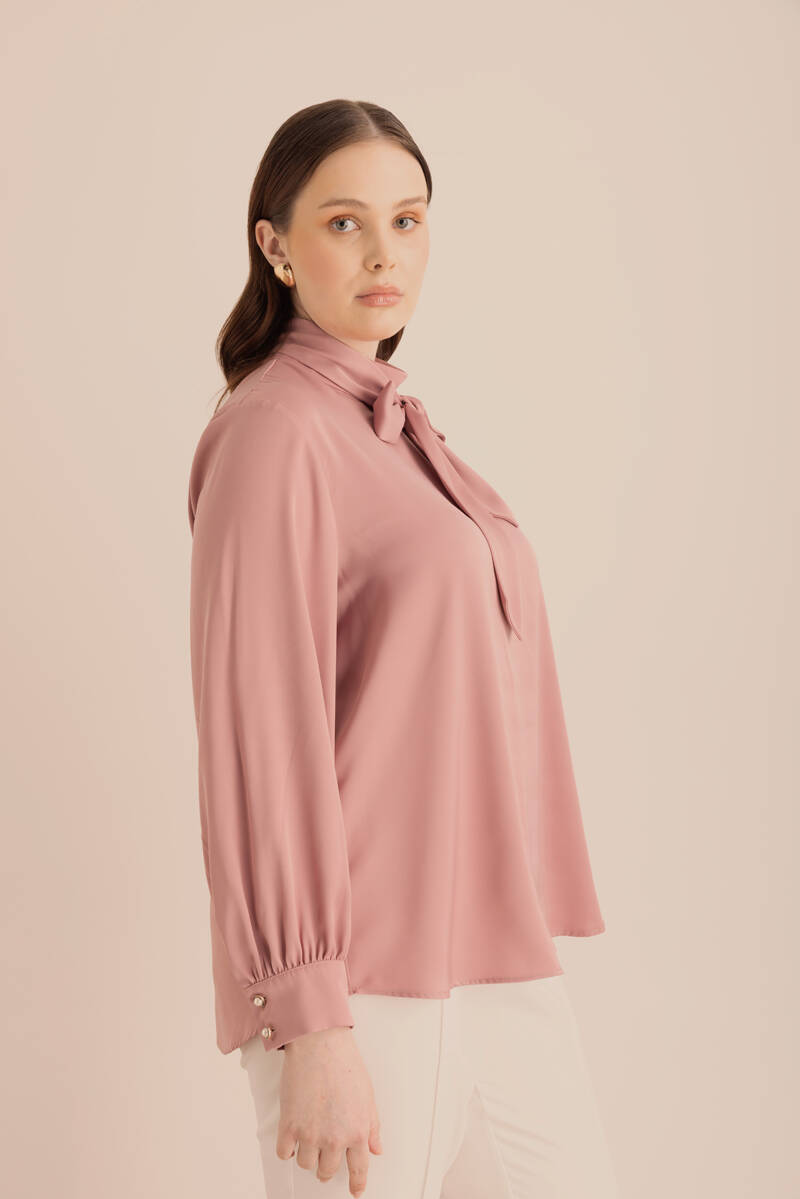 Pembe Yakası Pili ve İşleme Detaylı Dokuma Bluz