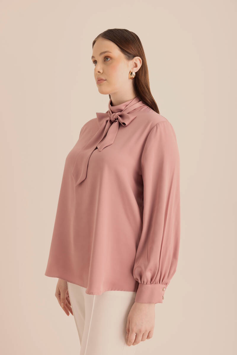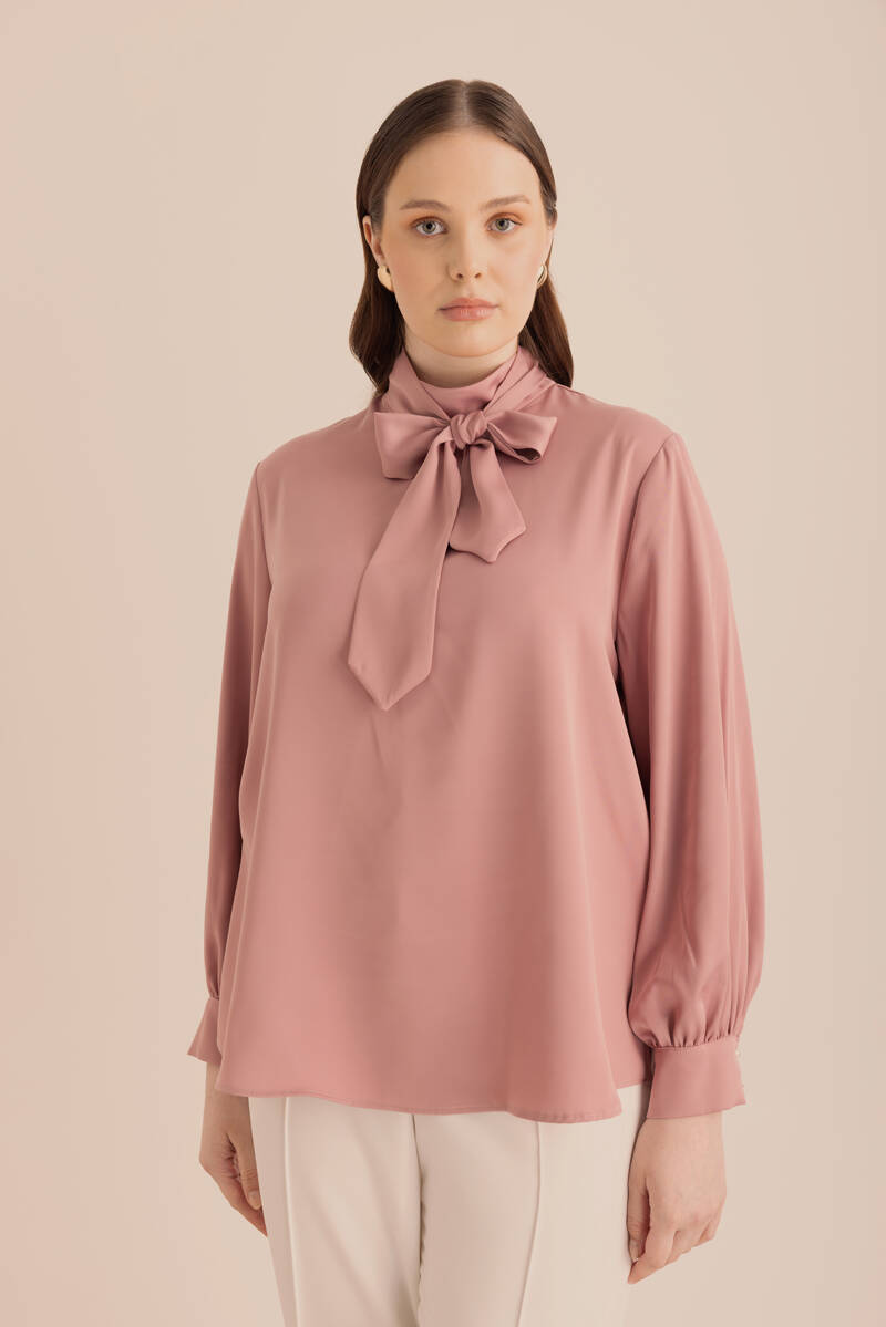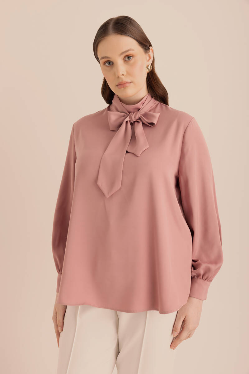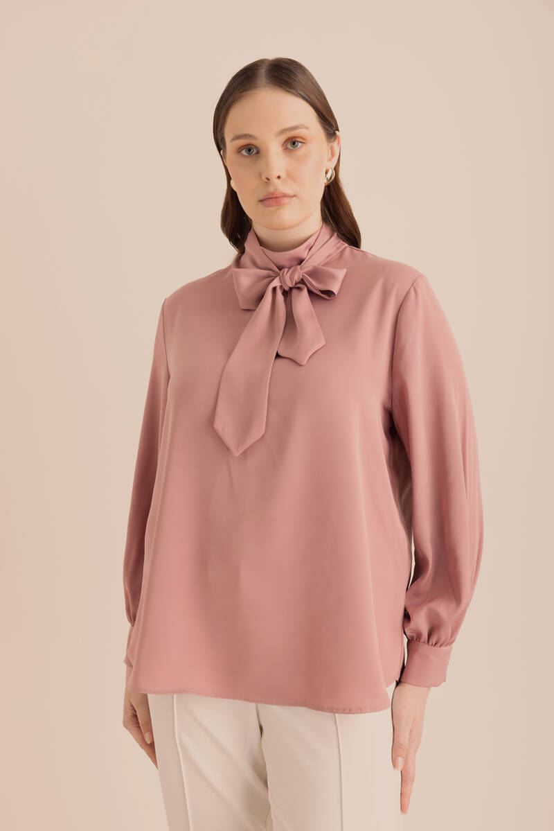 Pembe Yakası Pili ve İşleme Detaylı Dokuma Bluz
