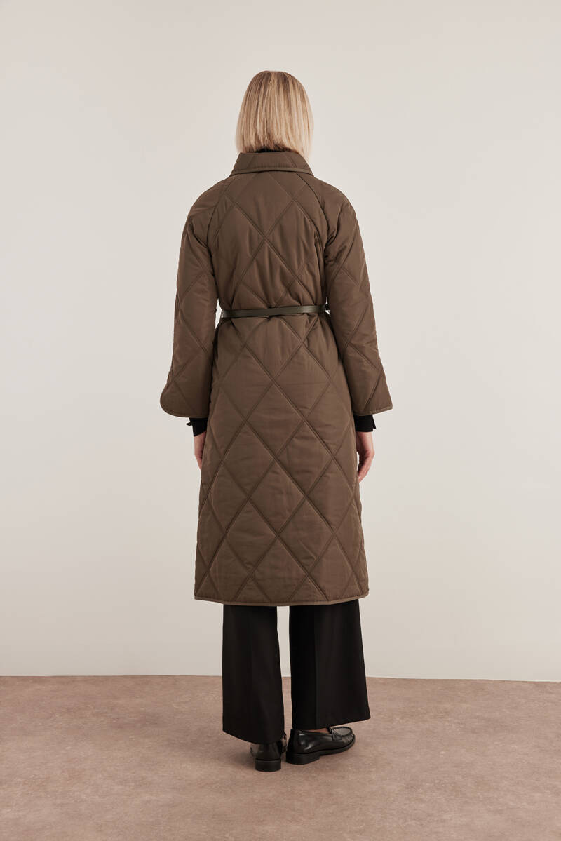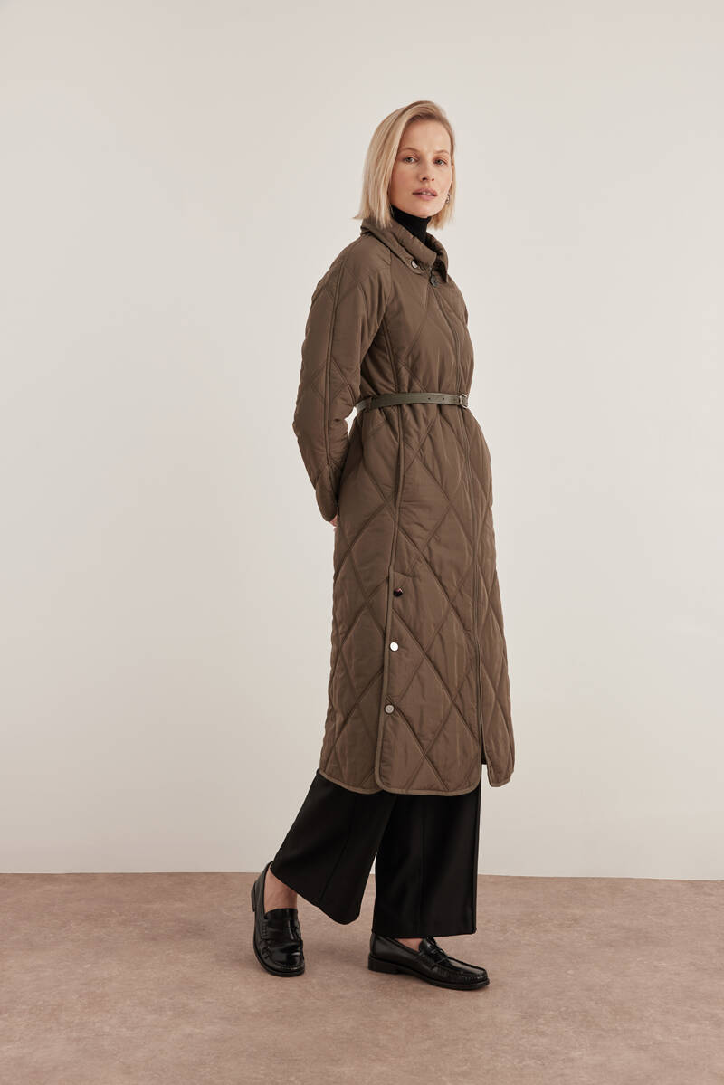 Ekru Belden Büzgülü Düğme Detaylı Mont