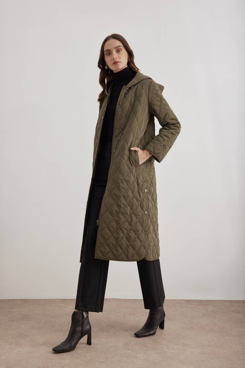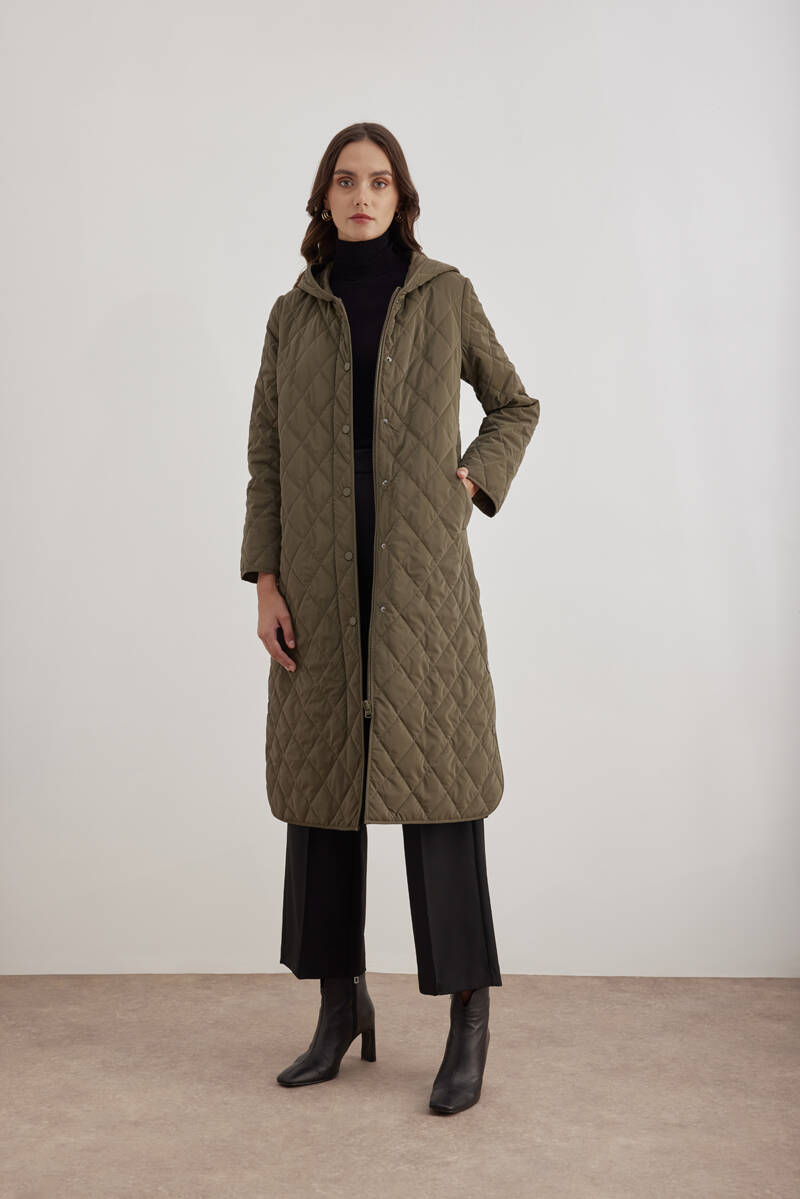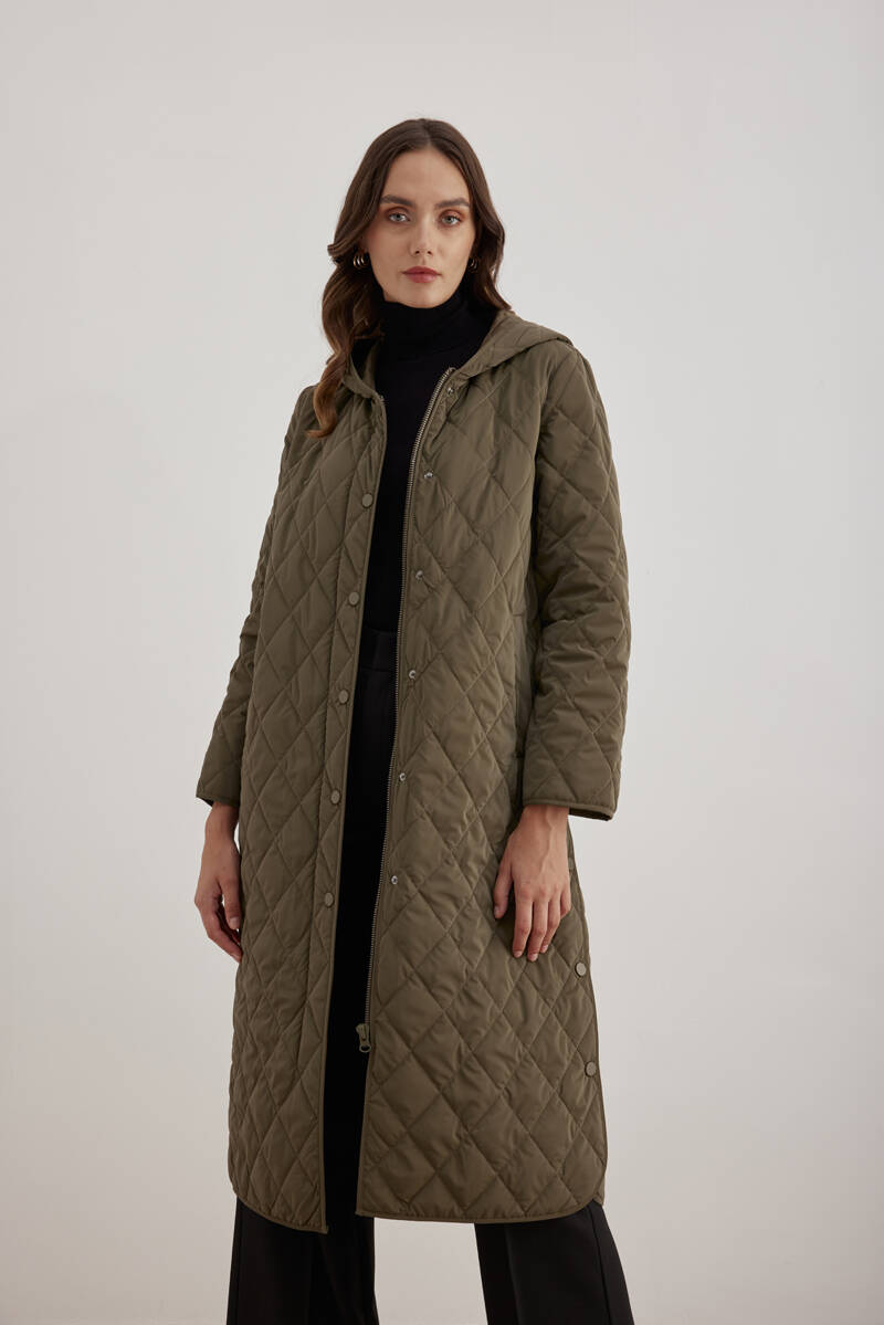 Haki 5829111 Yaka Detaylı Kapitone Kısa Mont