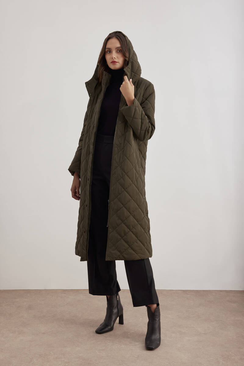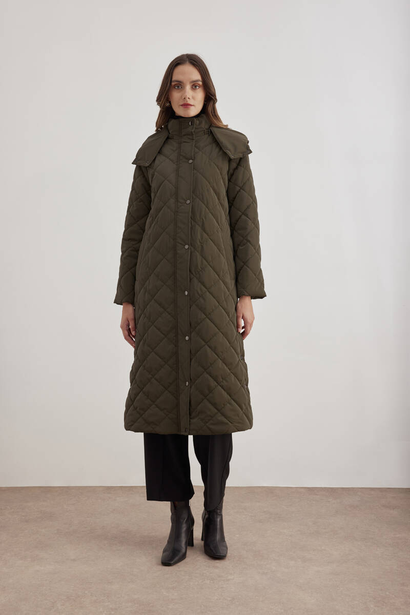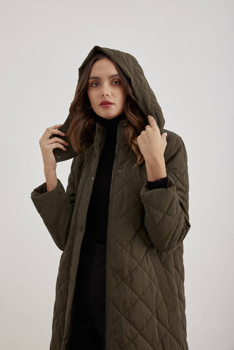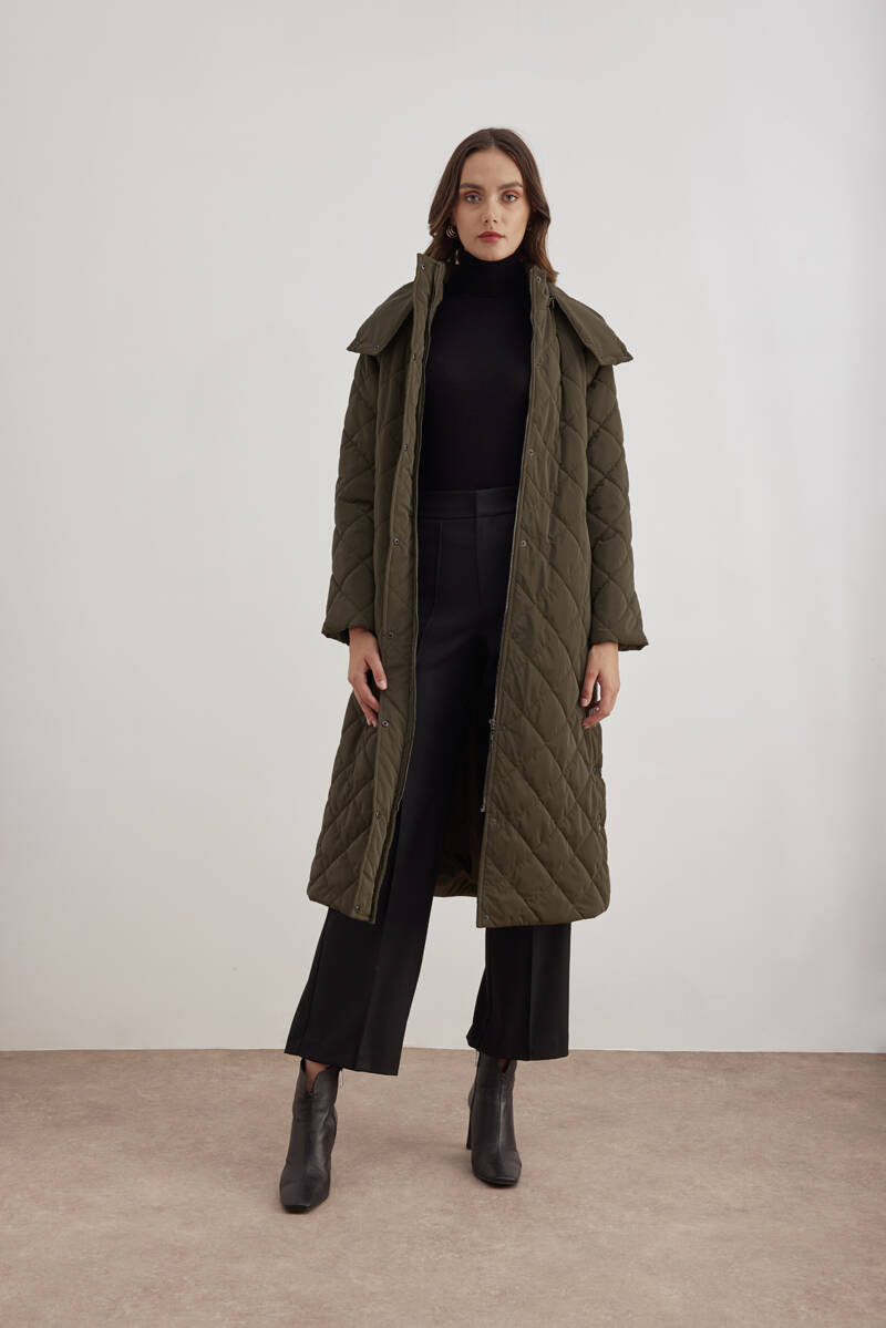 Haki 5829111 Yaka Detaylı Kapitone Kısa Mont