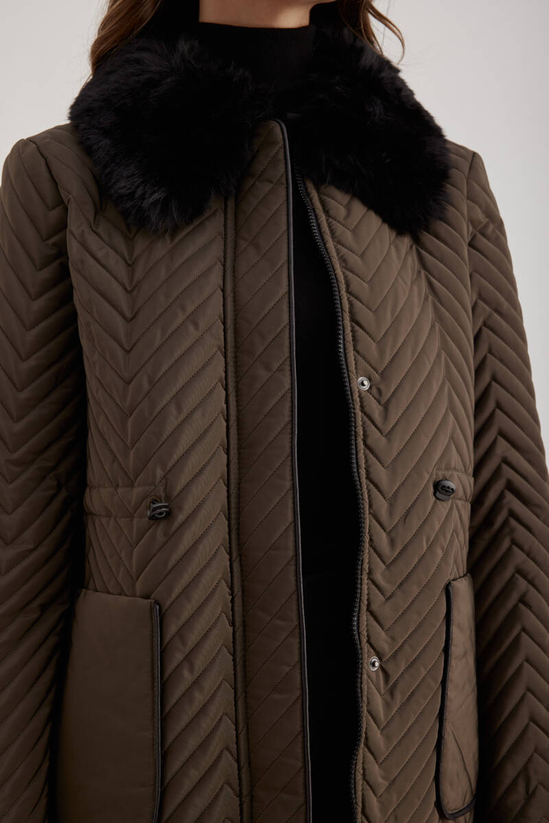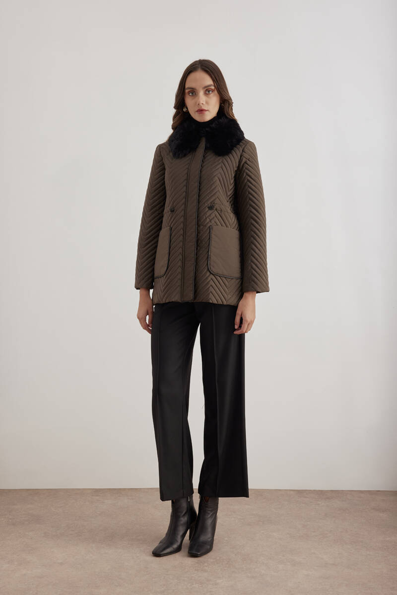Bej 5829111 Yaka Detaylı Kapitone Kısa Mont