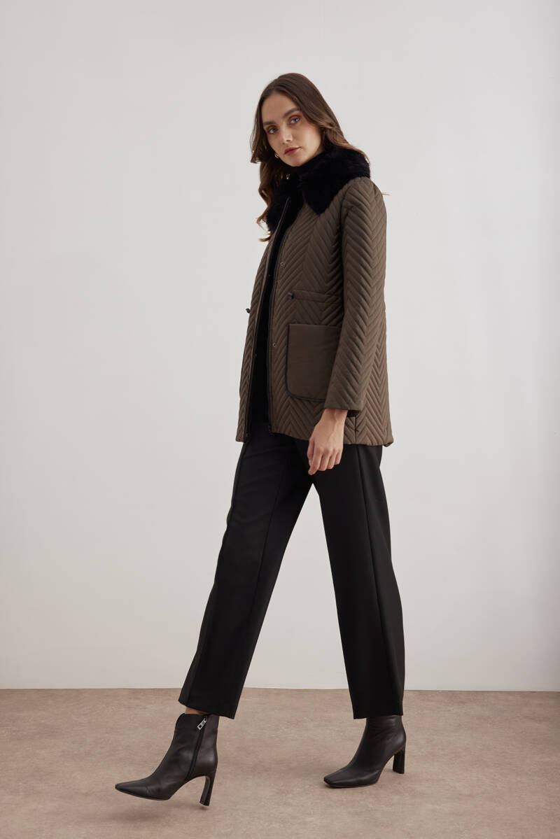 Siyah 5829111 Yaka Detaylı Kapitone Kısa Mont
