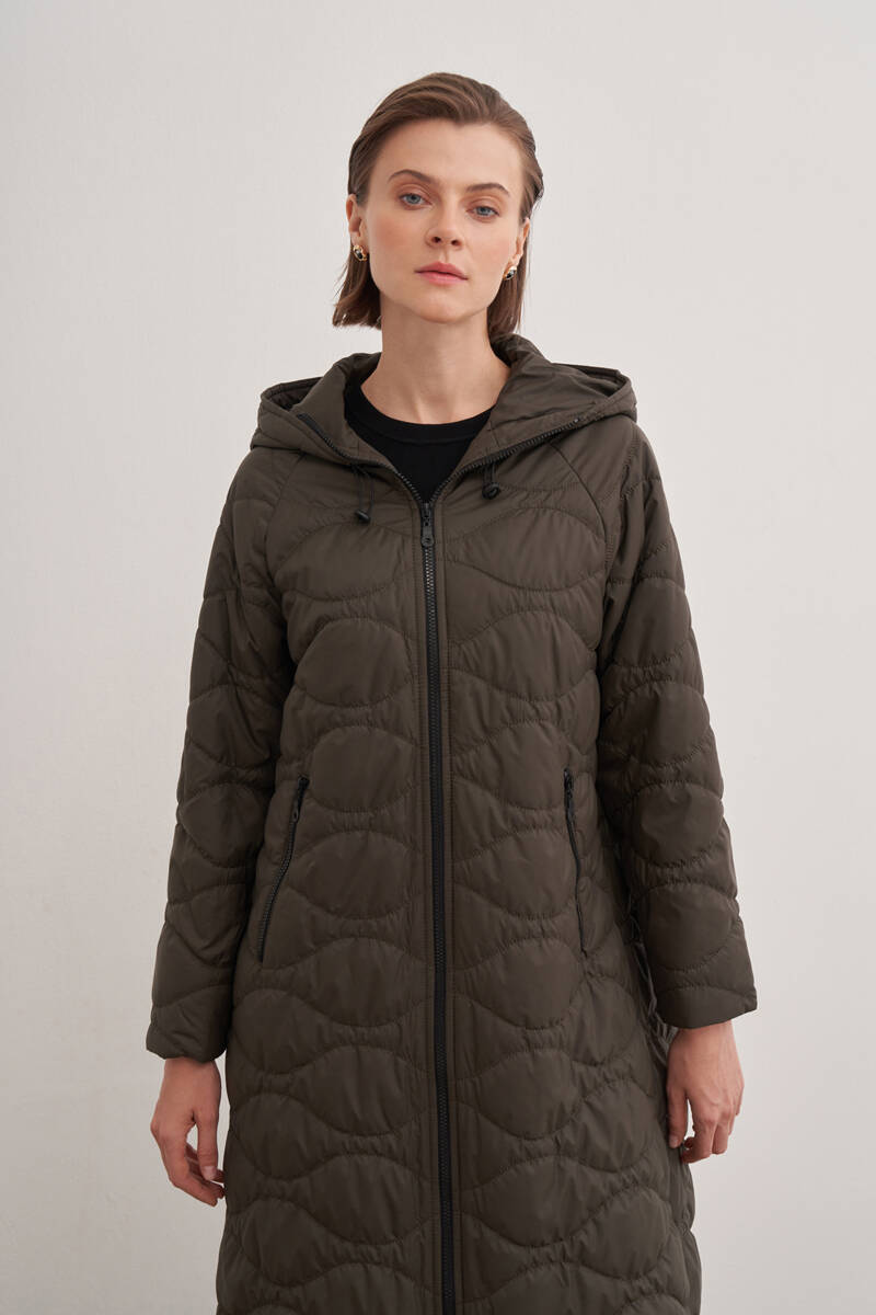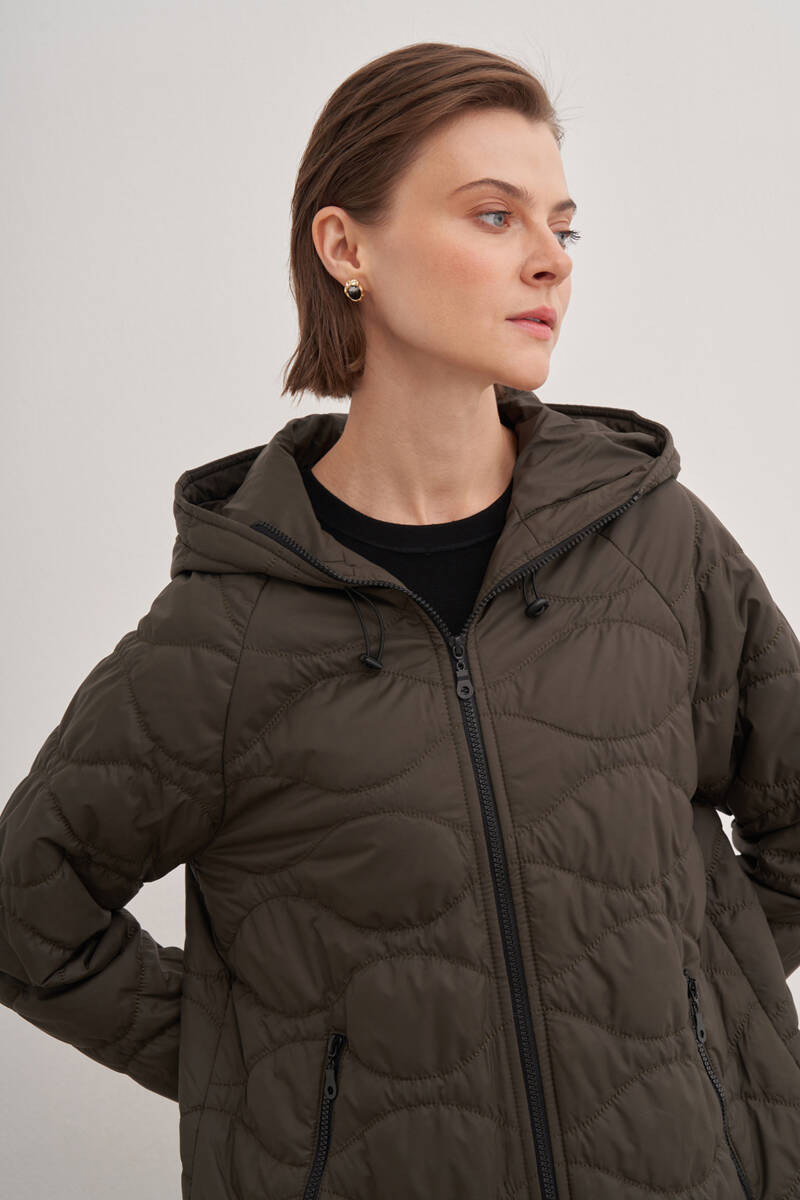 Haki 5829111 Yaka Detaylı Kapitone Kısa Mont